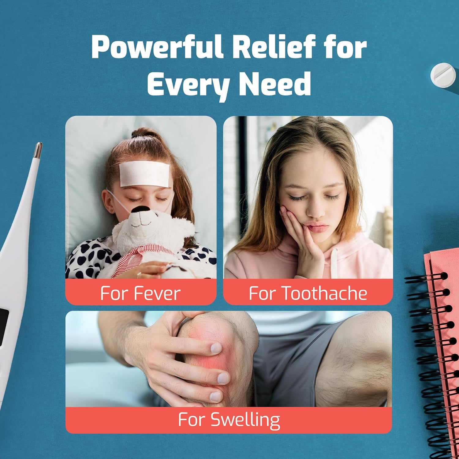 - UNWRAP RELIEF ANYTIME, ANYWHERE - Individually-wrapped compact pouches are suitable as on-the-go cooling patches for hot weather, fever cooling patches for kids, infant fever reducer, an active cooling patch for headaches, swelling, burn relief, toothaches, soreness after exercise, even heat stroke.
