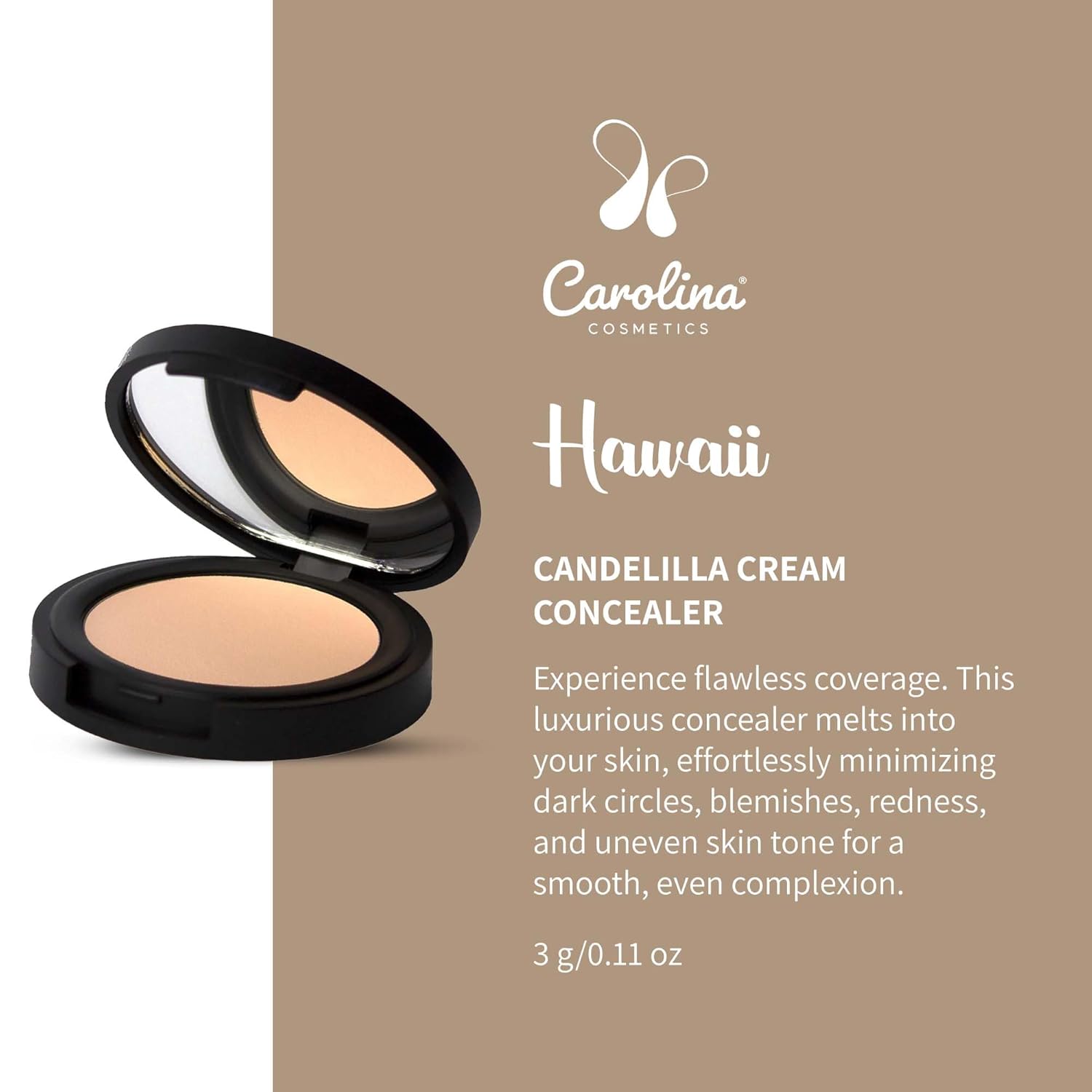 Candelilla Cream Concealer in Hawaii Color - Vegan, Non-GMO - Minimizes Dark Circles, Blemishes & Uneven Skin Tone - 0.11 oz