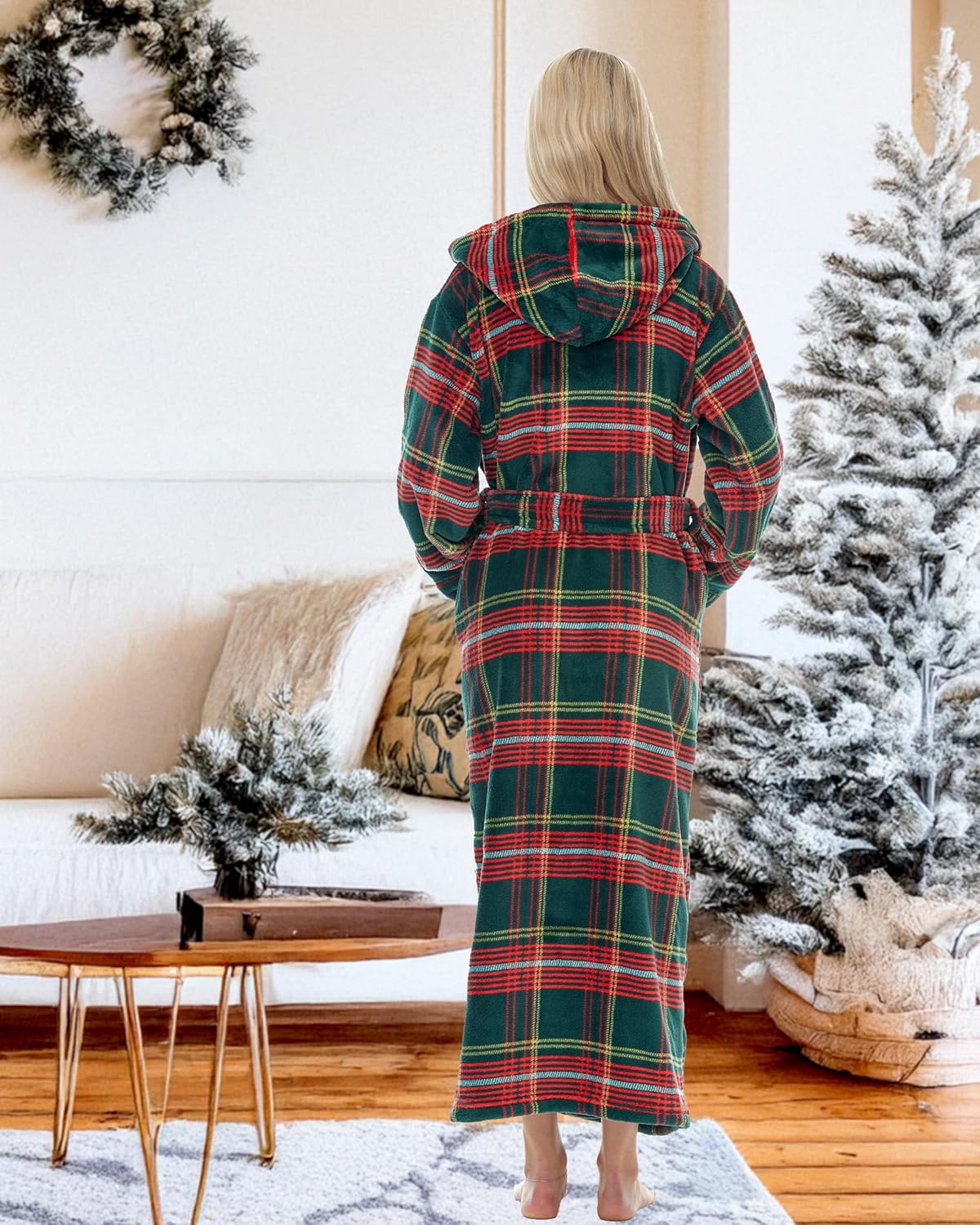 - THICKER - 2 times thicker than average fleece robe for women bathrobe. Hooded Bath robes female with male versions also available. The ideal, stylish housecoats for women for Fall and Winter. Size XL, Forest tartan robe by Alexander del Rossa.