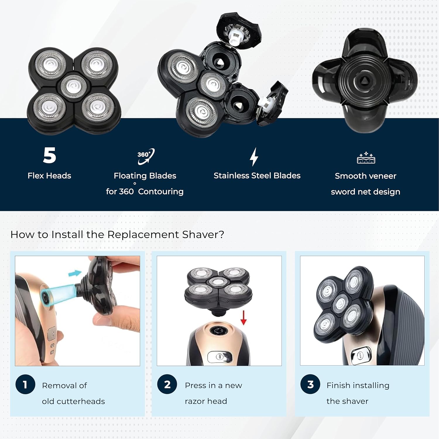 - 【Compatibility】: Universal replacement razor blade heads for all 5 Head Shaver Replacement Heads for Fre*b*ird Head Shaver Kit shaver ,Freedom Fle*Seri*s Replacement Blades shaving kit head shaver for bald men shavers