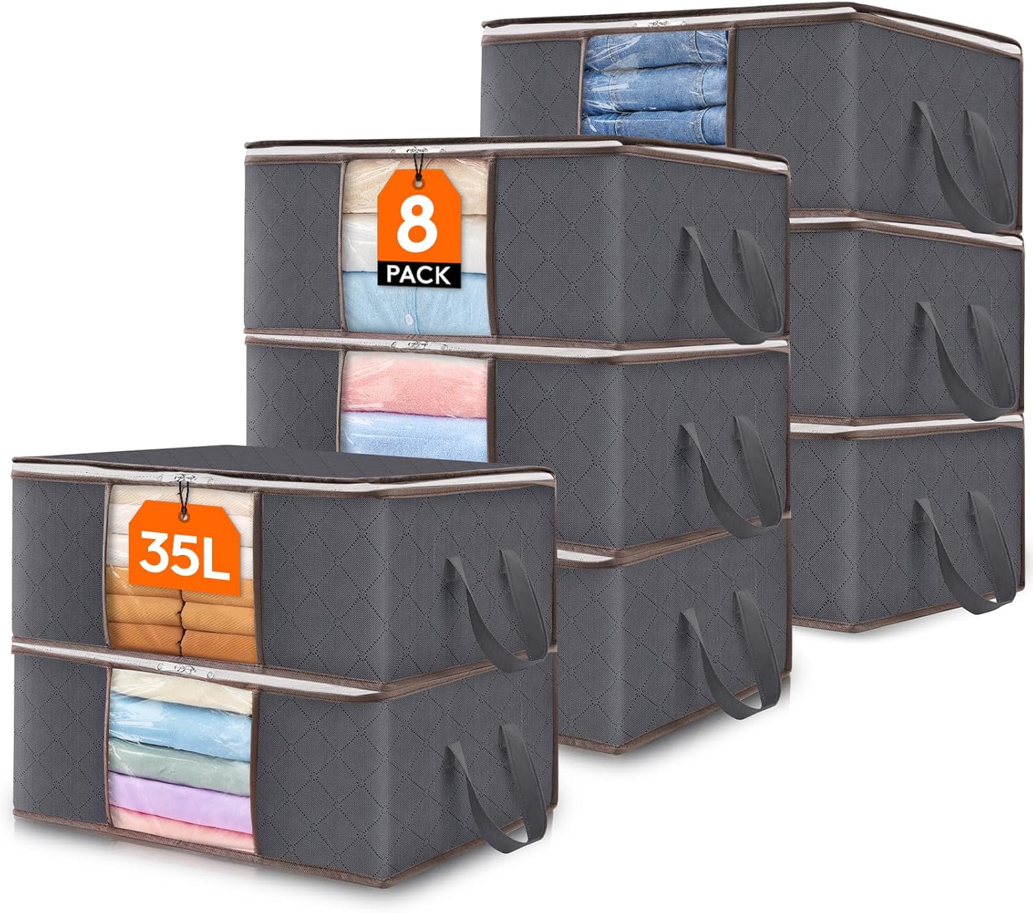 Lifewit 8 Pack Clothes Storage Bag, Foldable Storage Bin Closet Organizer with Reinforced Handle, Sturdy Fabric Blanket Storage with Clear Window, Storage Containers for Clothing, Bedding, Gray