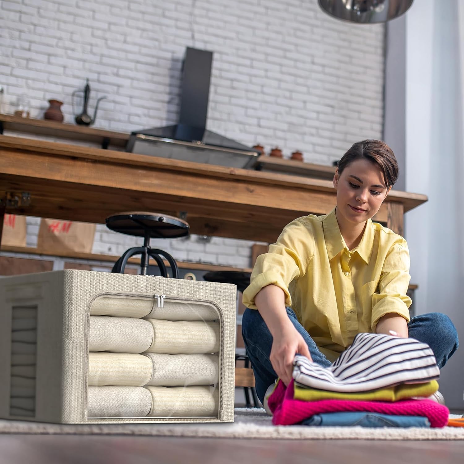 - Multipurpose -The Durable Handles handle with ergonomics design let you move more easily by a scientific approach, the fabric Storage bins perfect for storing clothing, linens, holiday decorations, quilts, blankets, seasonal clothing, etc. can be for use in bedrooms, closets, study rooms, office, put over the cabinet, or under the bed.