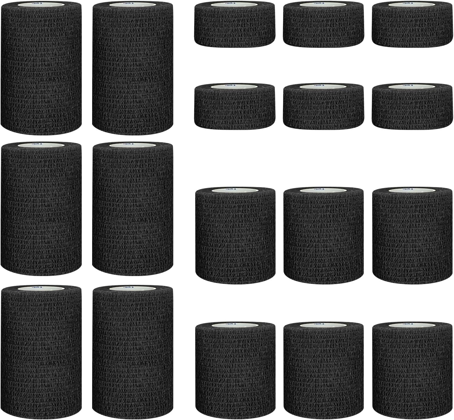 1"/2"/3" Self Adhesive Bandage Wraps, 18 Pack Black Self Adherent Cohesive Bandages Wrap for Wounds, Vet Wrap, Ankle Tape, Tattoo Tape Wrap, Medical Tape, Color Athletic Tape