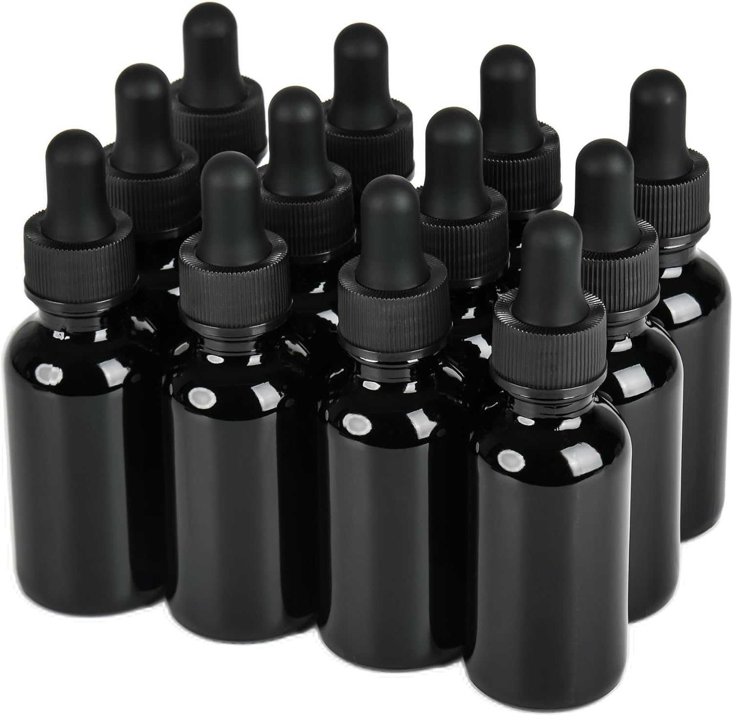 12 Pcs, 1oz Black Glass Eye Dropper Bottle, Tincture Bottles with Leak-Proof Design, Stronger Suction, for All Kinds of Mixed Liquids