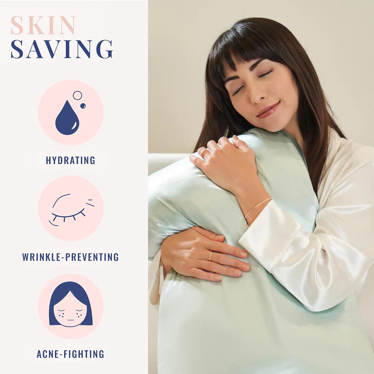 Blissy Silk Pillowcase - 100% Pure Mulberry Silk - 22 Momme 6A High-Grade Fibers - Silk Pillow Cover for Hair & Skin - Regular, Queen & King (Mint, Standard)