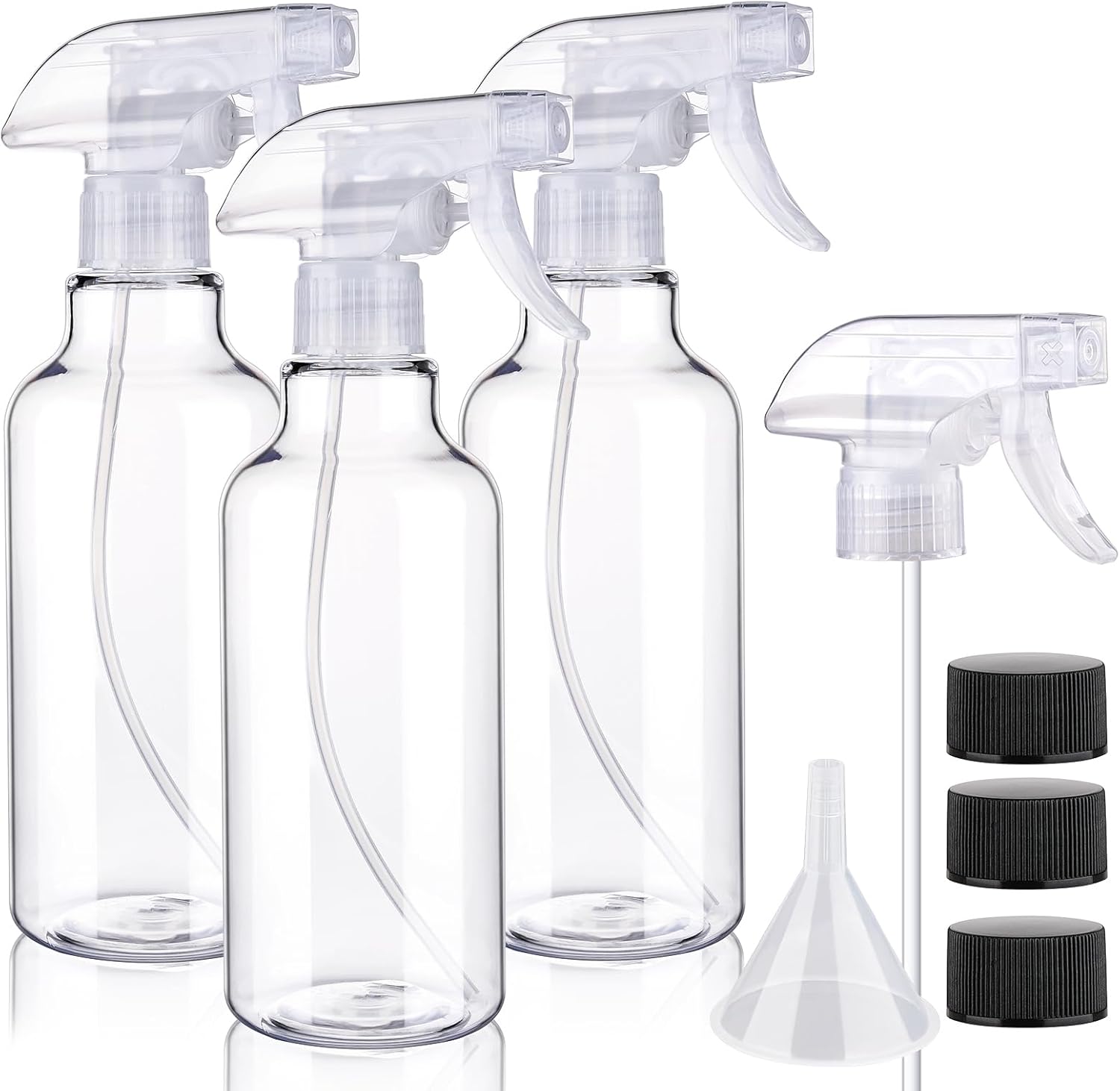 - SATISFIED SERVICES: Our 3-pack 10oz/300ml Plastic Spray Bottle set includes an extra spray nozzle, a funnel, and 3 caps.