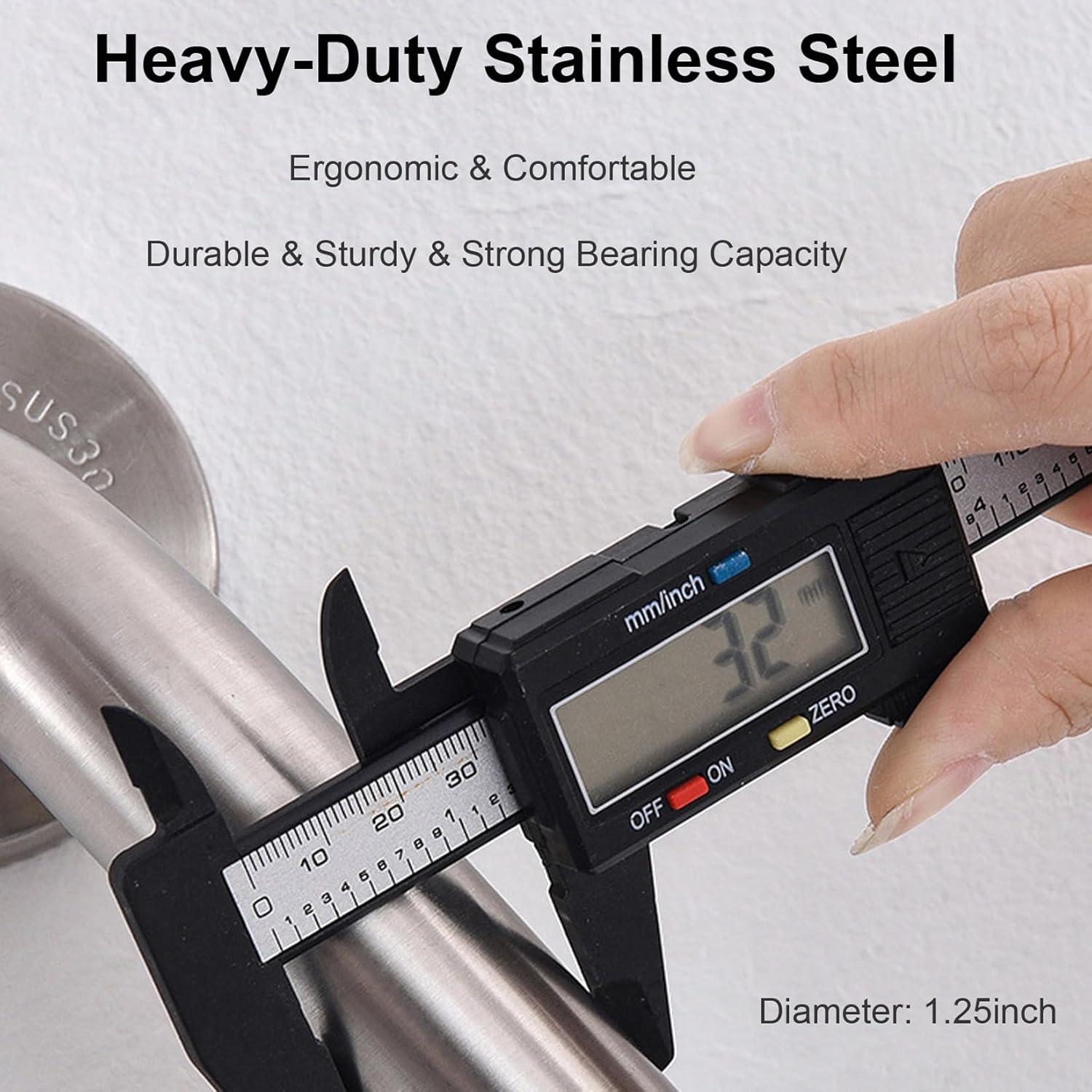 - Optimal Size for Shower Grab Bars: Before purchasing, please measure your space to ensure a perfect fit for the grab bar, as this is crucial for secure installation and effective use. Review the sizing image for all listed dimensions to guarantee the best fit and compatibility. Our grab bars feature an optimal size of 12 inches in length and 1.25 inches in diameter, making them perfect for most people