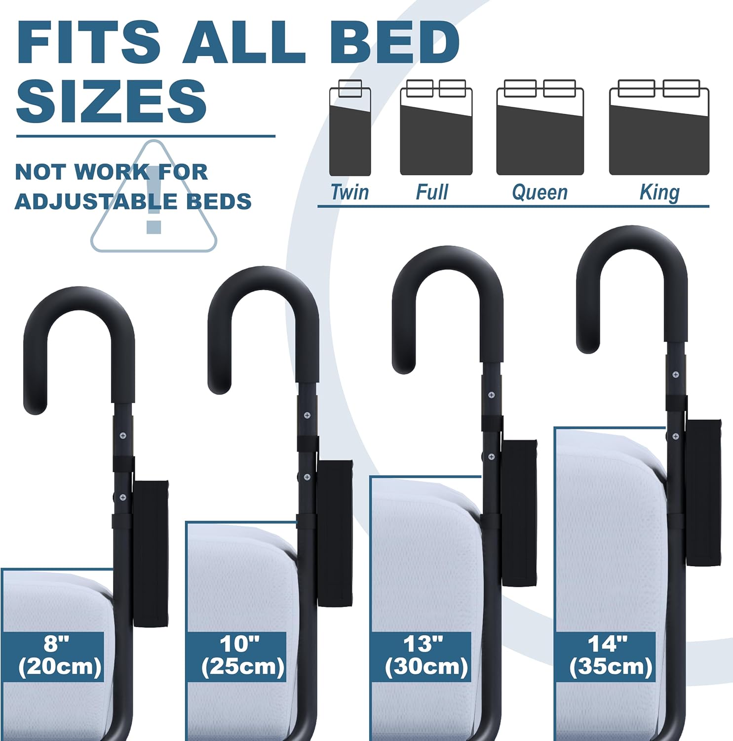 - Heights Adjustable adult bed rail - Our adjustable bed cane is a versatile solution that fits king, queen, full, and twin size beds. The railing can be also used as bunk bed rails guard for top bunk.