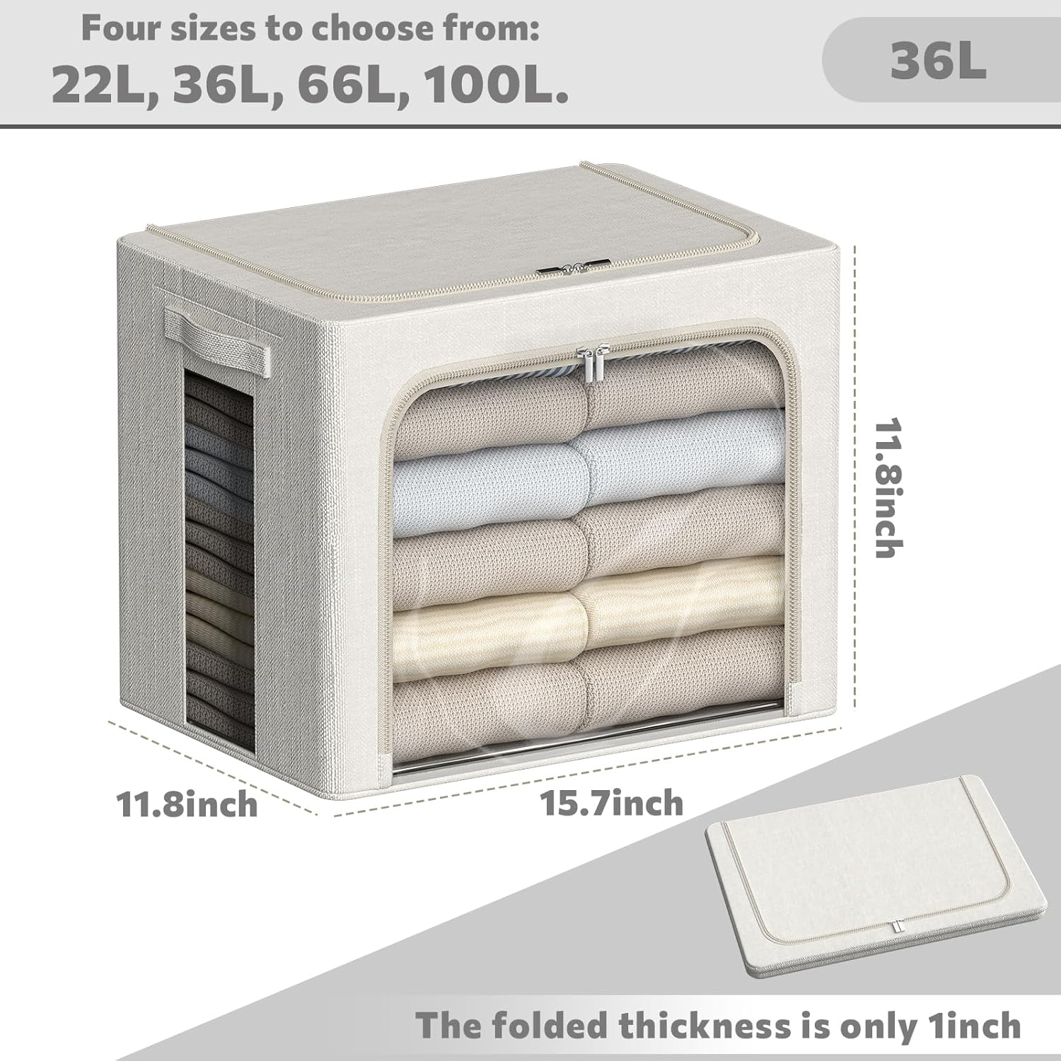 - Excellent Linen Storage - The clothes storage bin is made of premium linen cloth,The interior of the clothes storage bin is supported by a sturdy steel frame. and high-quality MDF board provides excellent weight-bearing capacity,These organizers bins are beautifully crafted and of high quality.