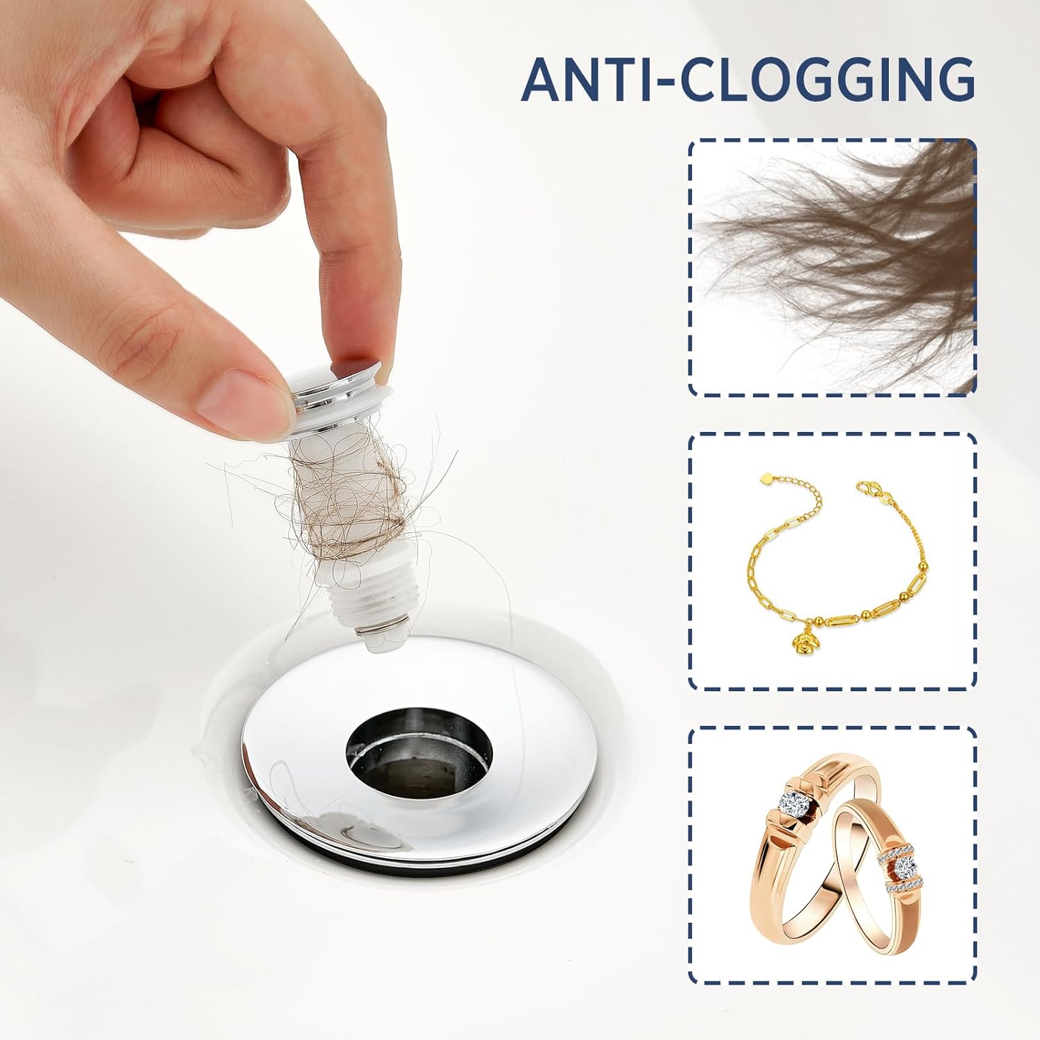 - 【Easy Installation & Cleaning】This pop-up drain stopper requires no tools for installation—just remove the old one and insert the new strainer core. The drain stopper can also be disassembled into three parts for easy cleaning, saving you time and avoiding costly plumber fees.