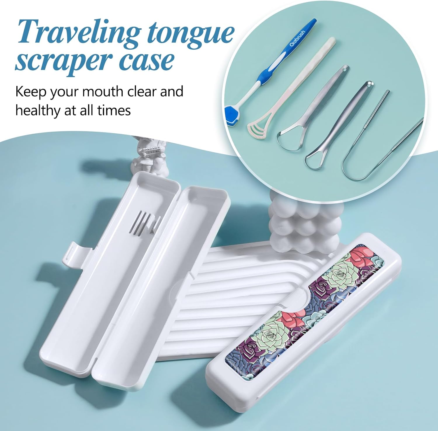 2 Pcs Toothbrush Travel Case - Colorful Pattern, Holder and Covers for Toothbrushes, Includes Tongue Scraper Case