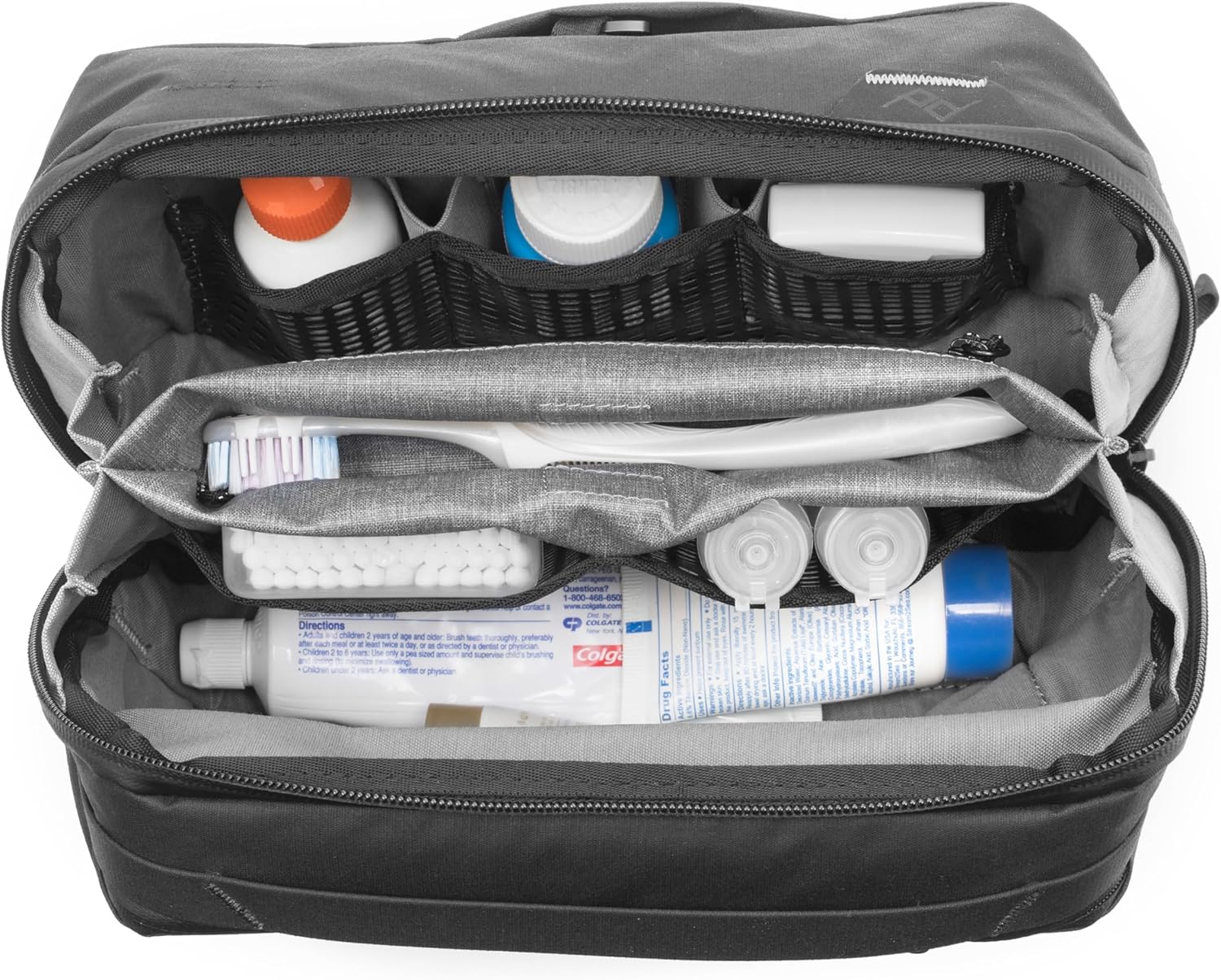 - THOUGHTFUL STORAGE: Origami-style mesh pockets, a zip pocket and a magnetic toothbrush sleeve keep hygiene essentials sorted and clean. All pockets turn inside out for easy deep cleaning after spills or leaks.