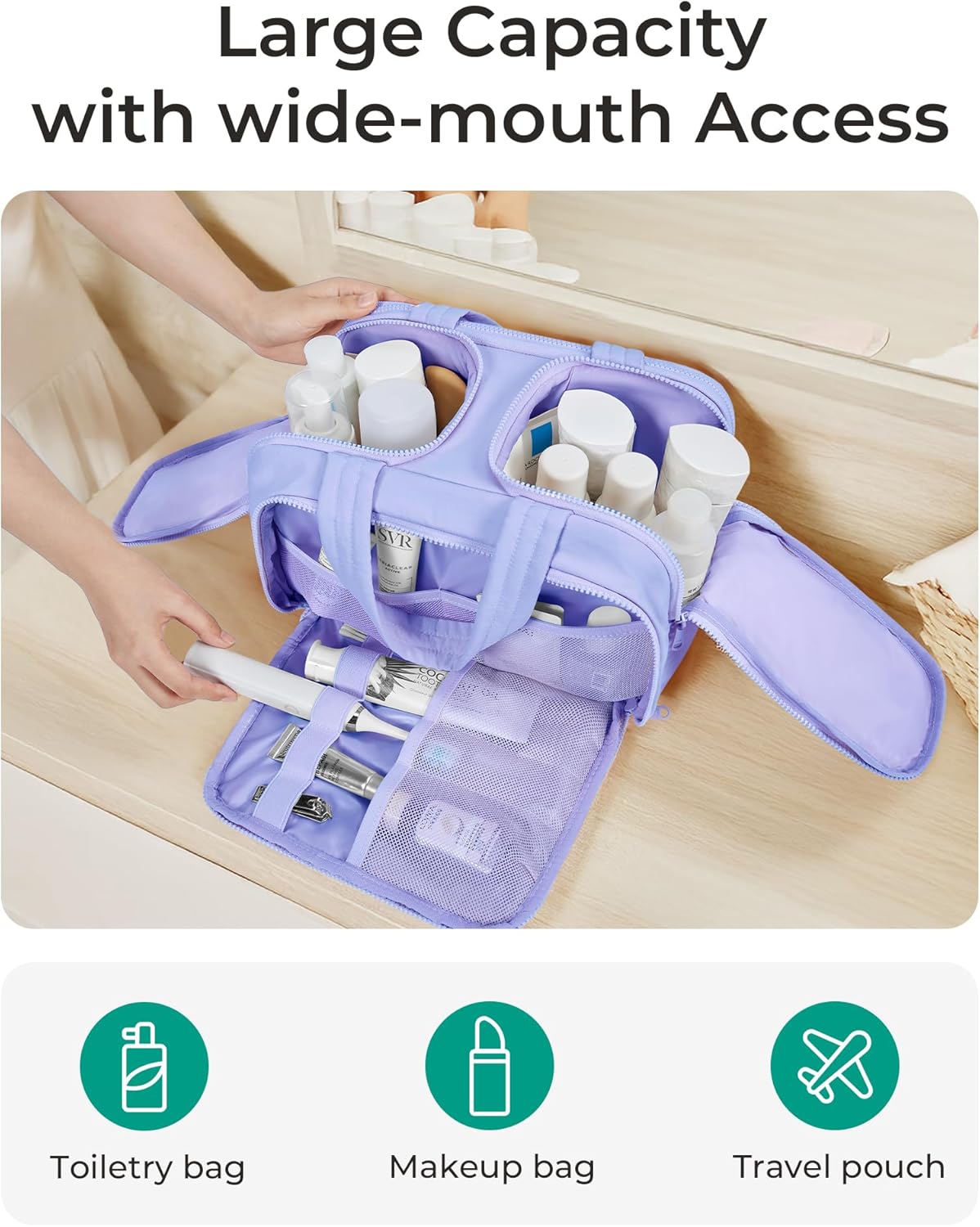 BAGSMART Travel Toiletry Bag, Lightweight Large Wide-open Travel Bag for Women, Puffy Cosmetic Makeup Bag Organizer with Handle for Accessories,Essentials, Toiletries, Purple