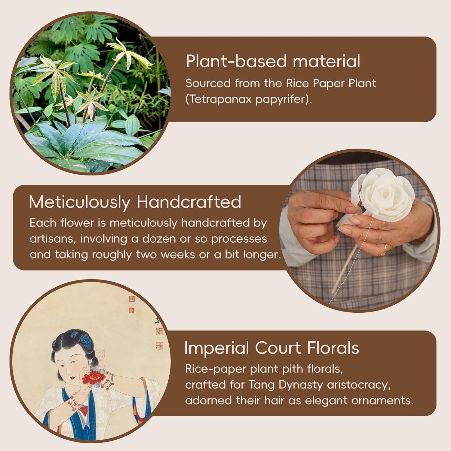 - Natural Material: This reed diffuser sticks is made of paper extracted from natural plants. Designed to be peony, chrysanthemum, peony, lotus, and rattan, it is safer to place in the home