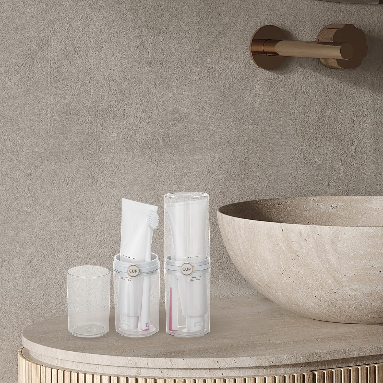 Yeeco Toothbrush Travel Case, 2 pcs Transparent Portable Toothbrush Cover with Mouthwash Cup, Plastic Cylindrical Tooth Brushing Holder for Home School Camping Travelling, 8.1 x 2.6 inches,Clear