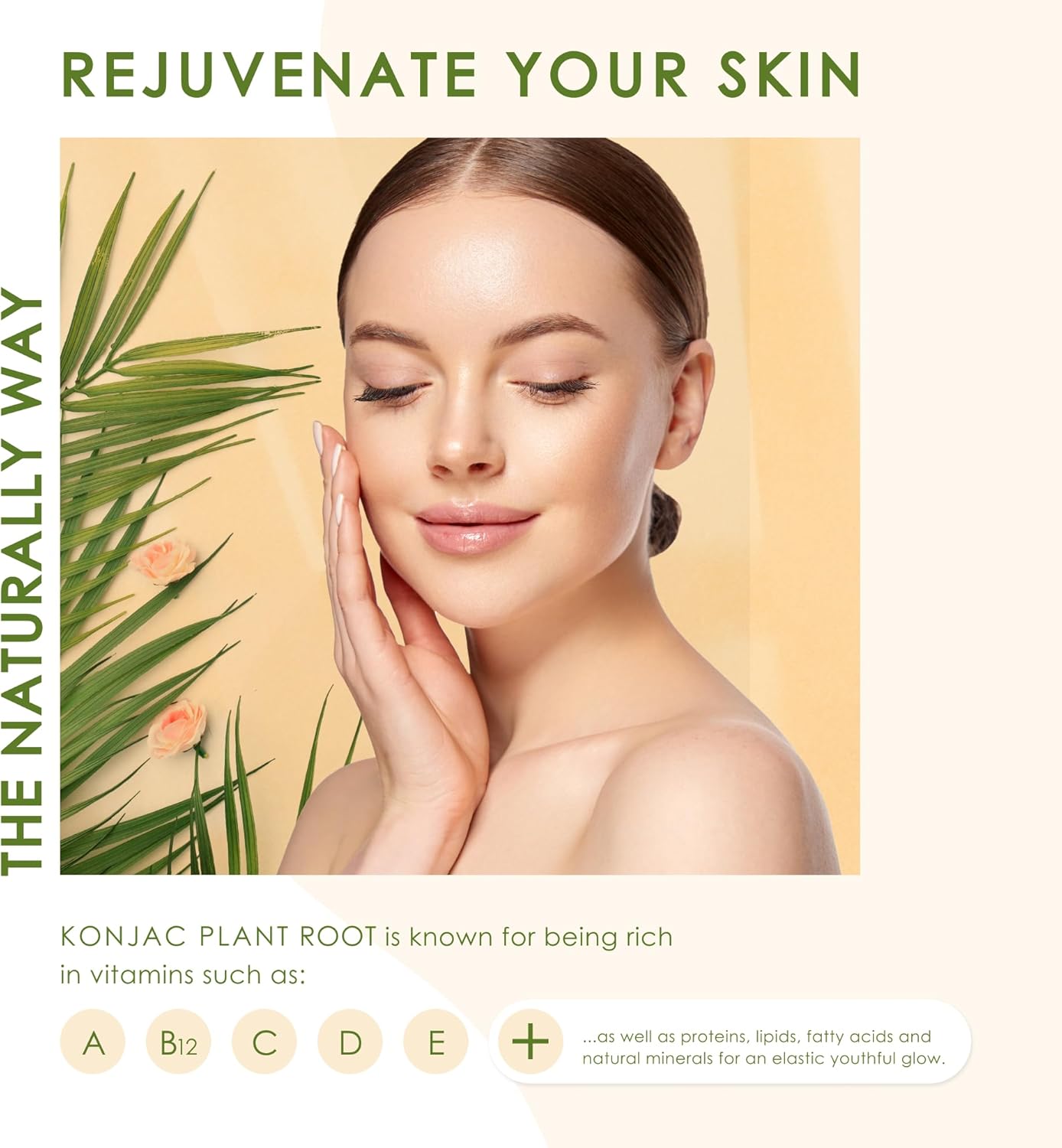 - REPLENISH Your Skin: Konjac plant is both luxurious and effective. This all-natural root is known for being rich in vitamins such as A, B12, C, D, & E, proteins, lipids, fatty acids and natural minerals such as copper, zinc, iron and magnesium. It also helps balance the skinโs natural pH level.
