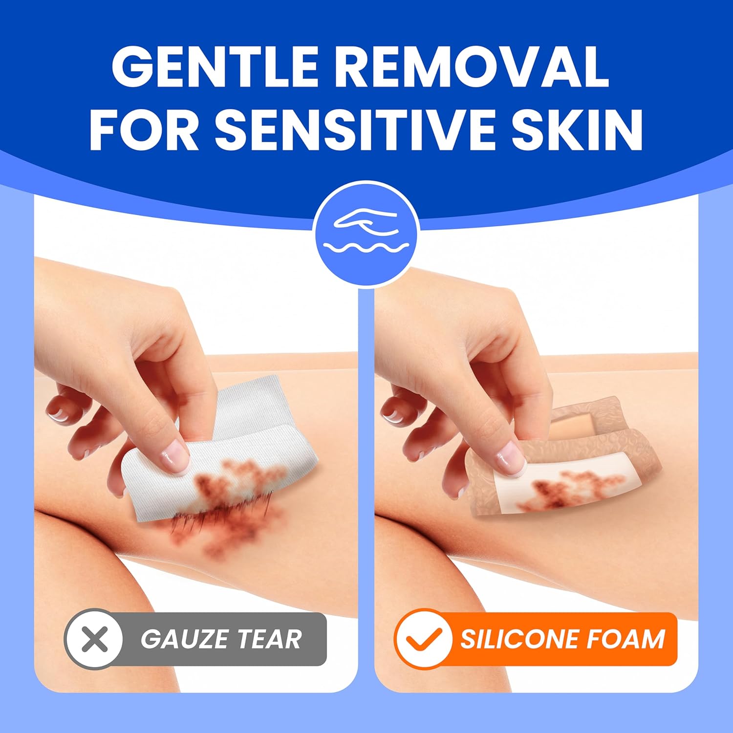 - Pain-Free Removal: Made with gentle silicone foam, our bandage removes easily without tearing skin or wound, ensuring a pain-free experience during removal