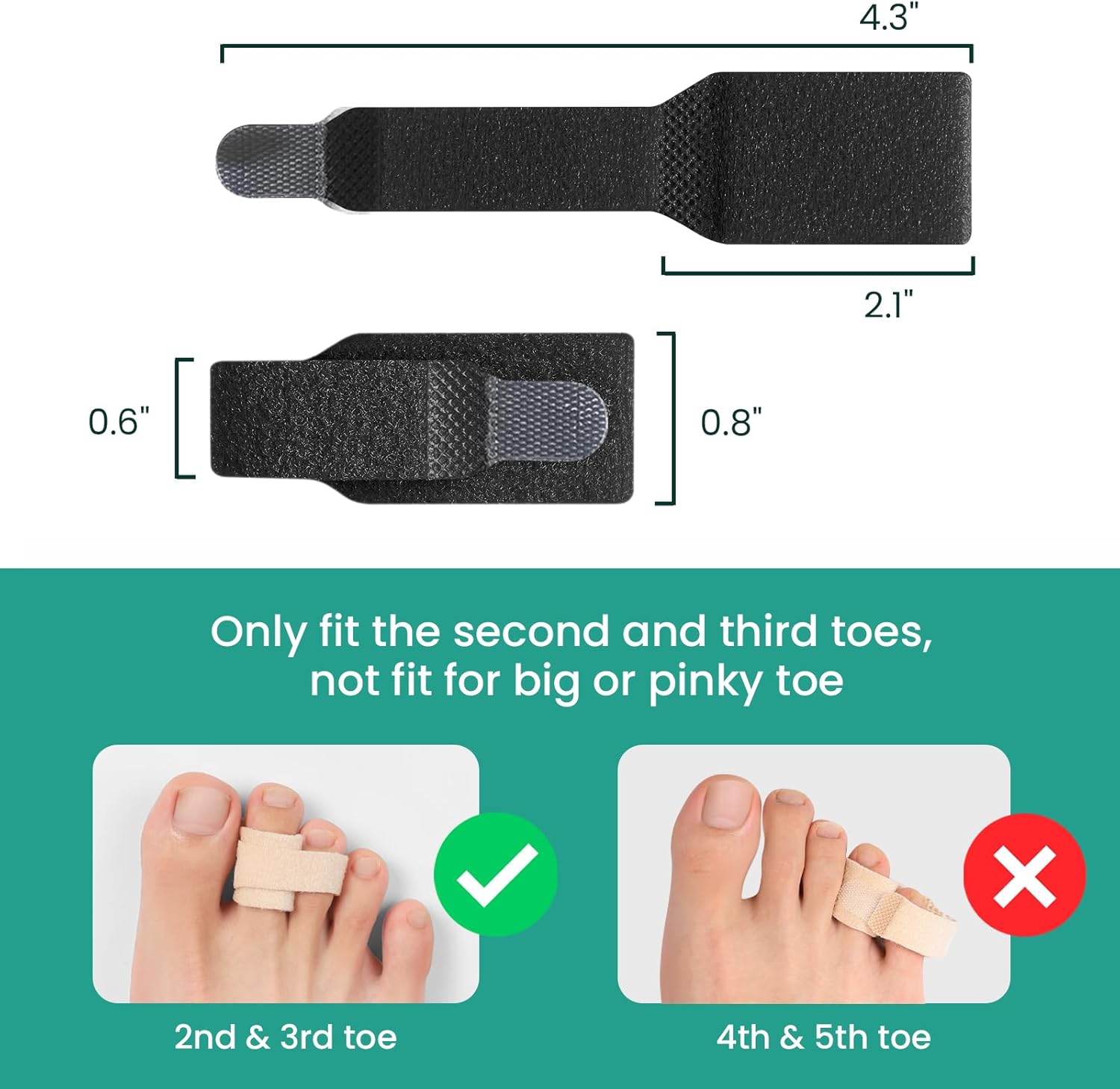 - Note: This size is not suitable for the big or little (fourth and fifth) toe; only use the second and third toes