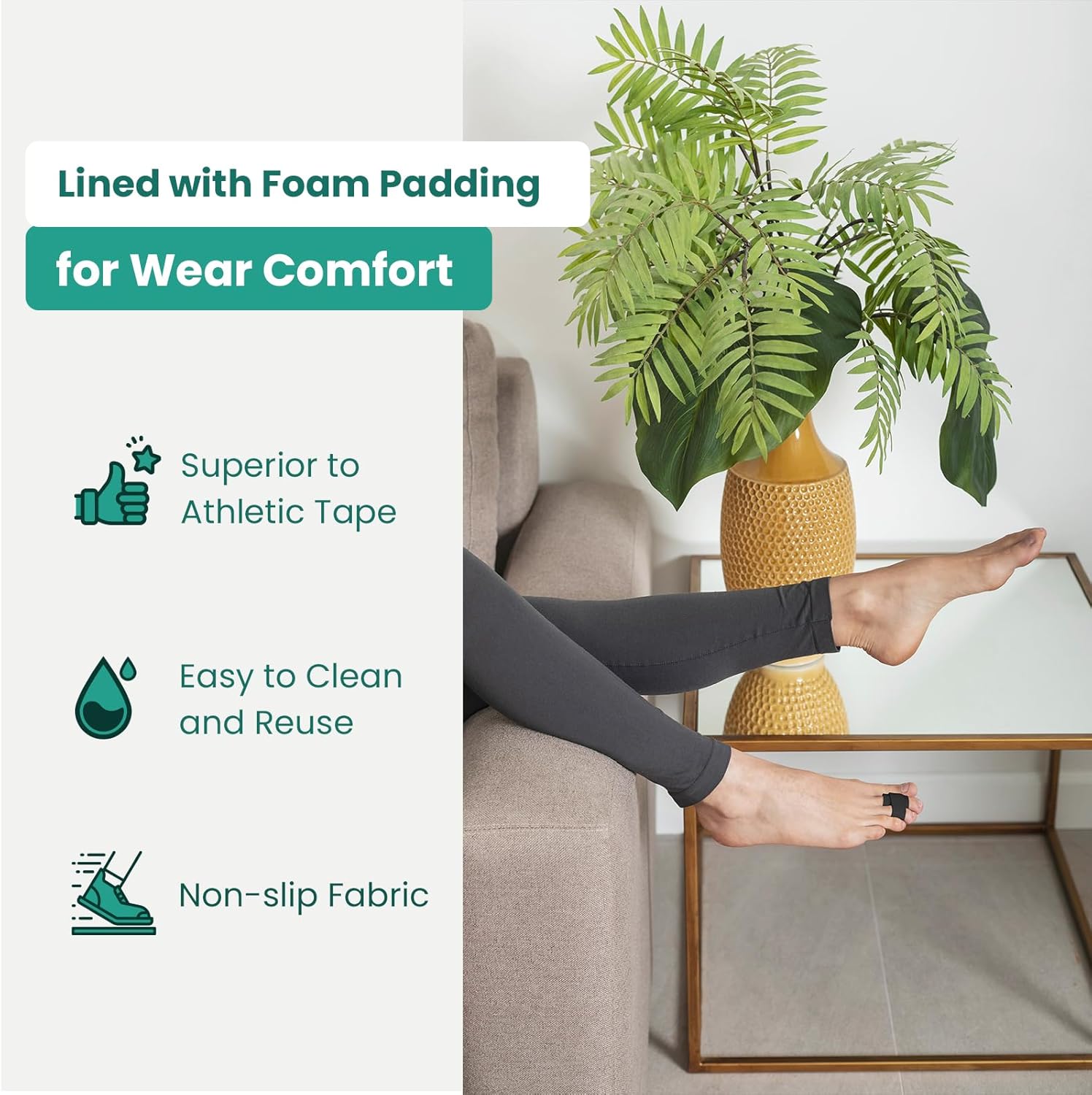 - Hammer Toe Protection - Lined with a cushioning latex foam layer to provide non-slip support while cushioning the toes. The soft fabric wrap cushions while gently straightening and aligning the hammer toe for proper positioning and protection from friction
