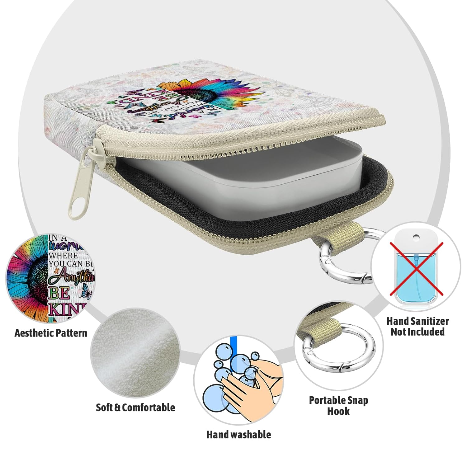 - Convenient Use: Smooth zipper and snap hook allow easy attachment to backpacks, belts or keychains. Keep your hand sanitizer accessible at all times, ensuring clean and hygienic hands. Compact size fits effortlessly in pockets or bags