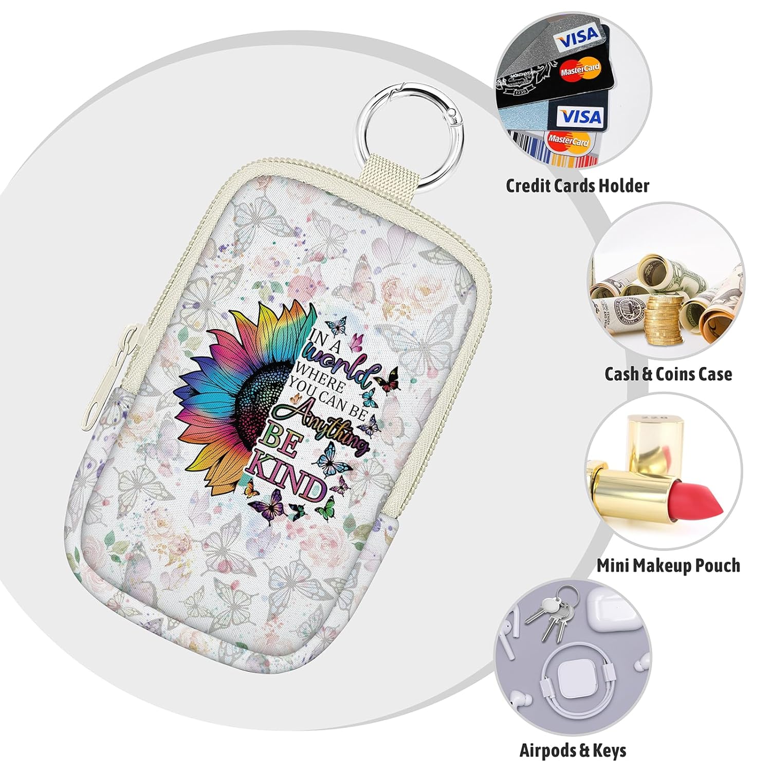 - Versatile Design: Not only a cute hand sanitizer holder, but also a nice organizer for credit cards, airpods, change, lipstick, lip balm, small pillboxes, car keys, and other small items. Good for outings, workouts, travel and daily life, keeping essentials organized and separate from other belongings