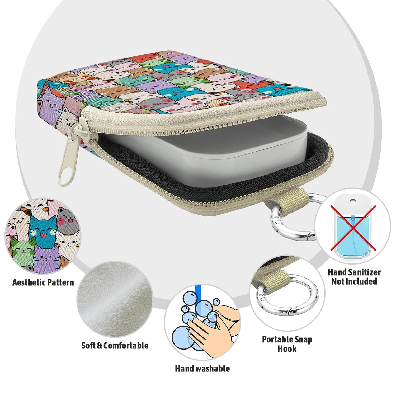 Cute Cat Hand Sanitizer Spray Case, Hand Sanitizer Holder Zippered Pouch, Fashion Accessory with Snap Hook for Glow Mist and Power Mist 1FL OZ