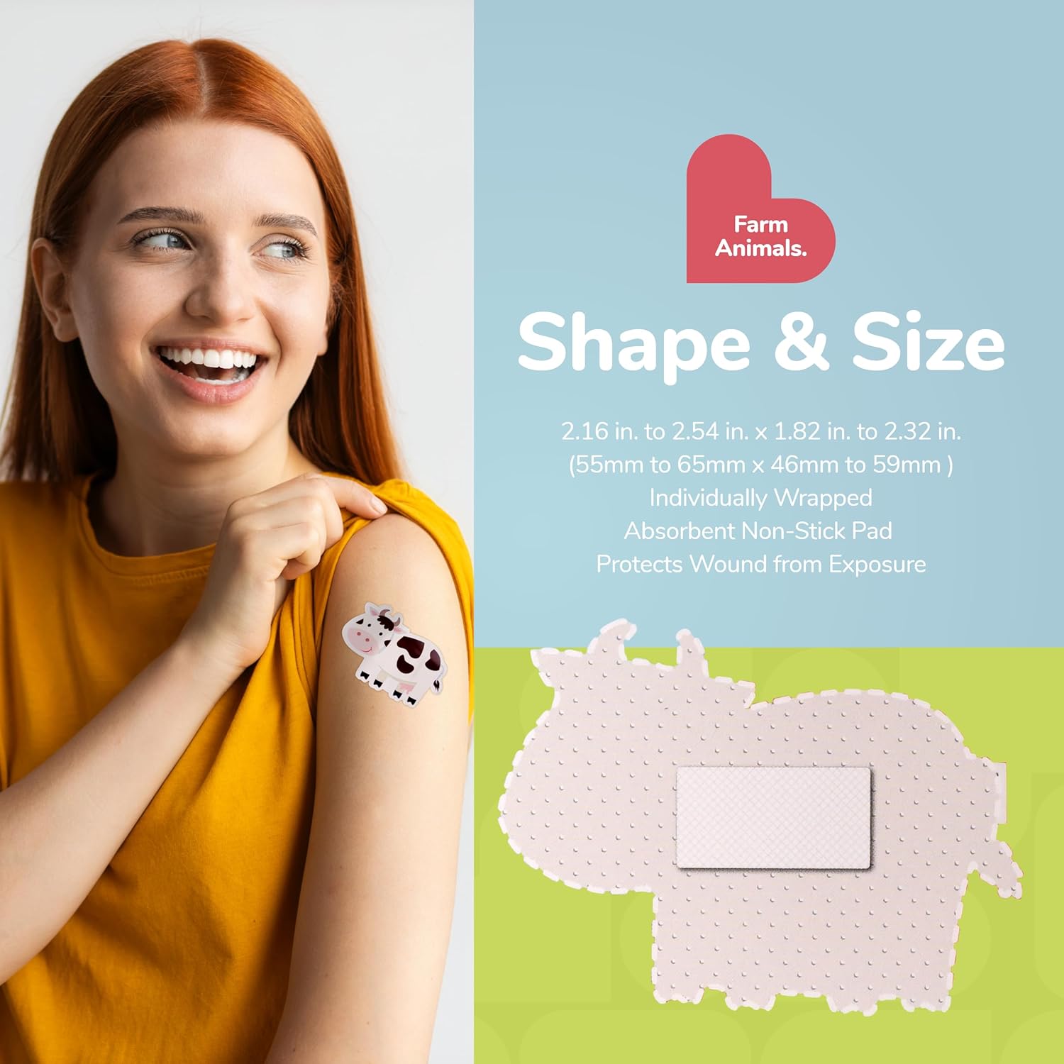 - 24 FARM ANIMAL KIDS BANDAGES: Fun farm animal-shaped adhesive bandages pack helps protect cuts, scrapes, and minor wounds while making healing less stressful for children; bandages come in 4 assorted styles
