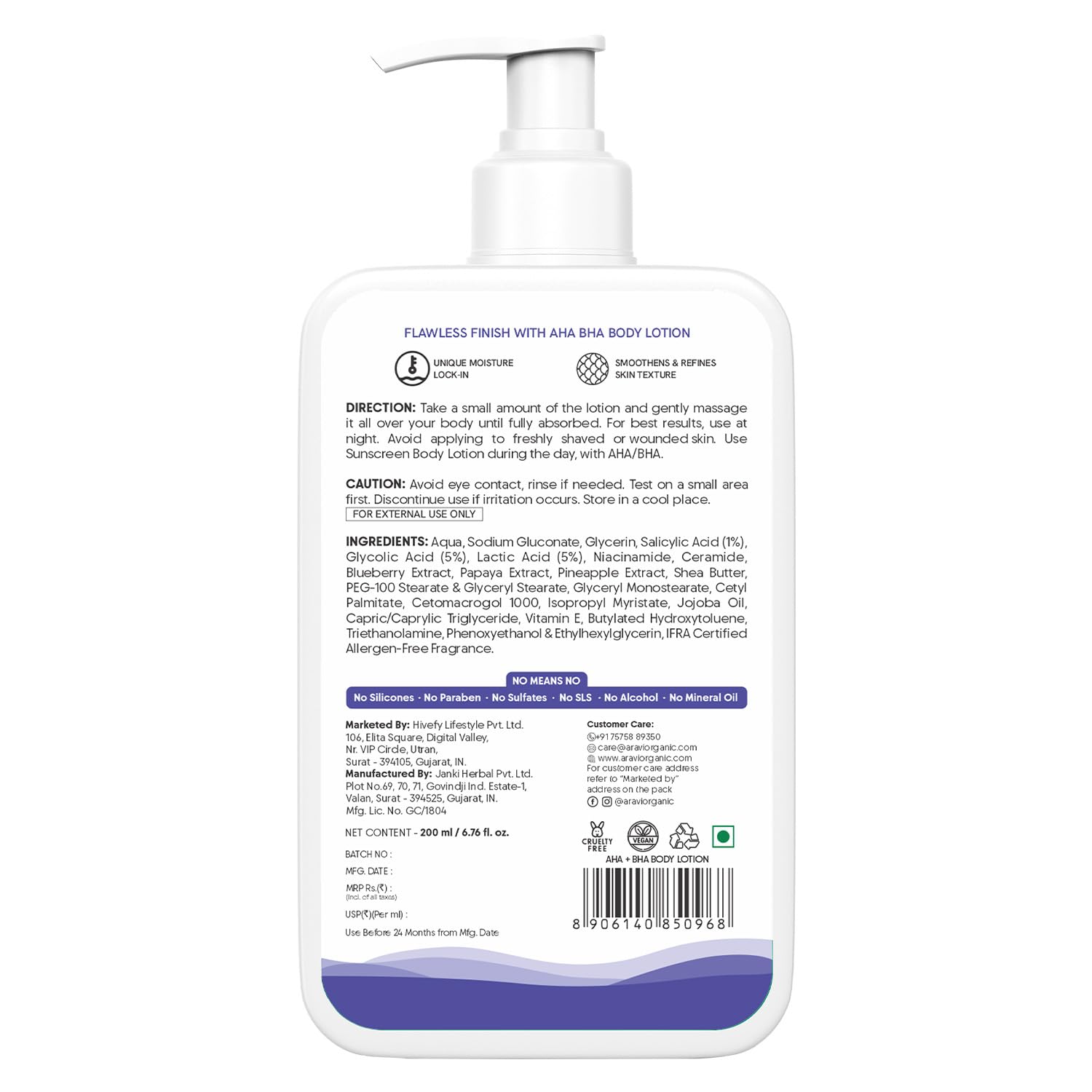 - MINIMIZES PORES: By keeping pores clear and free from debris, an AHA/BHA body lotion can help reduce the appearance of enlarged pores, contributing to a smoother appearance.