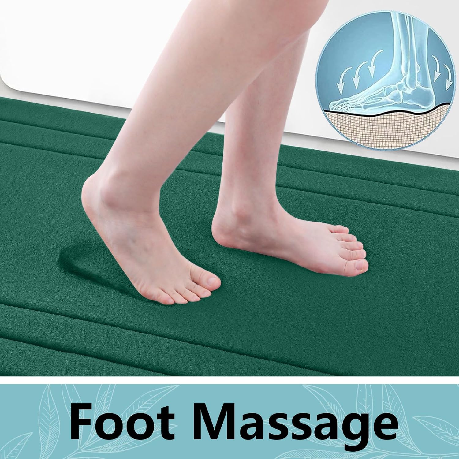 Arotive Memory Foam Bathroom Rug Mat 47x17, Ultra Soft and Absorbent Bath Mat, Machine Wash Dry, Comfortable Bath Rug Carpet for Bathroom Floor, Tub and Shower, Dark Green