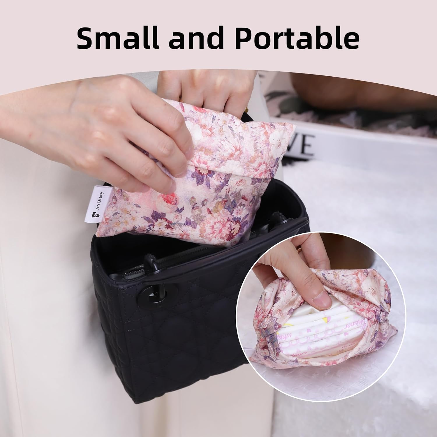 - 【Portable and Lightweight】The size of our sanitary napkin storage bag is 13*12 cm /5.1*4.7 inches. Compact and lightweight design, easy to carry and place in your bag or luggage, does not take up extra space, so that you are always elegant and neat when you go out. Whether you are going to school or going out for a picnic, you can carry it at any time, very compact and convenient.