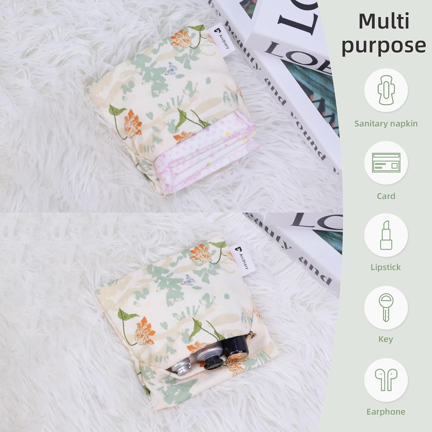 - 【Multifunctional】This menstrual pad pouch is perfect for storing sanitary napkins, tampons. It is also a multi-functional wallet for storing your personal belongings or some miscellaneous items: jewelry, cosmetics, credit cards, and so on. These menstrual pad pouches are suitable for daily use in office, school, dating, traveling, hotel, indoor or outdoor and more.
