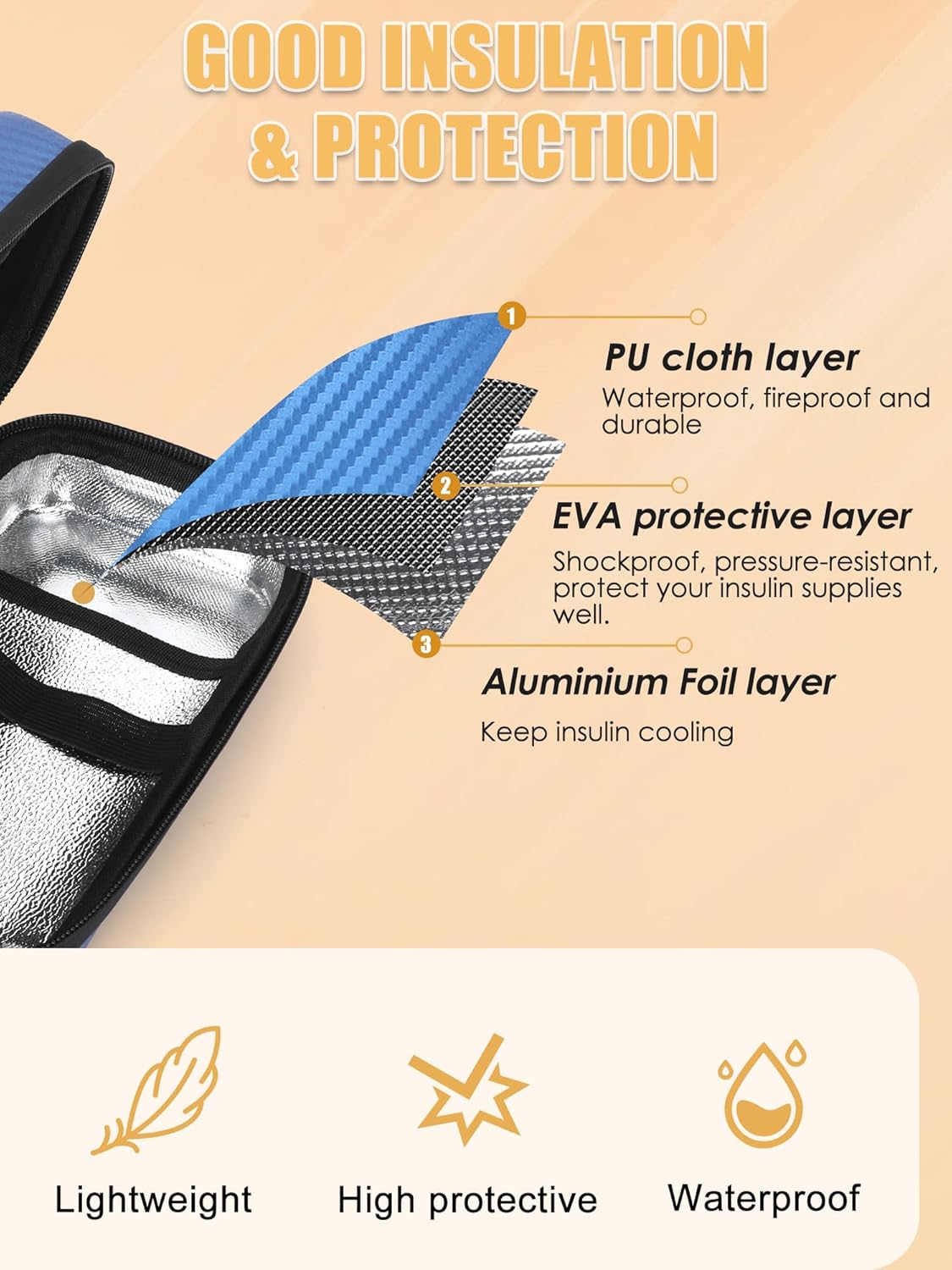 - Insulin Ice Packs for Long-Lasting Cooling - Included with this diabetic insulin cooler travel case are 2 TSA approved gel ice packs that maintain the optimal temperature for 6-10 hours. Simply freeze the Insulin ice packs for 8-12 hours before use, making it ideal for fly travel, road trips, cycling, or daily life.