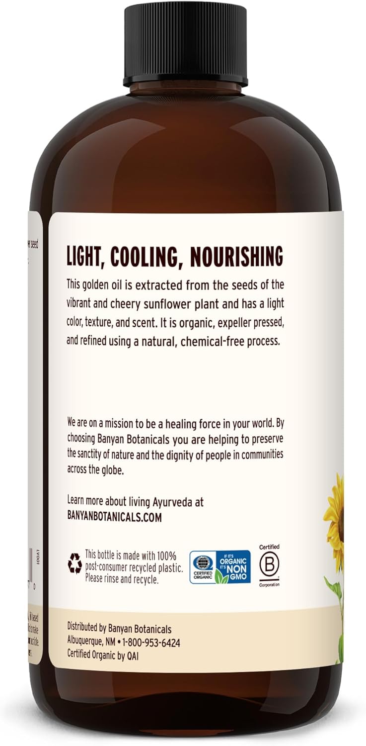 Banyan Botanicals Sunflower Oil – Pure & Organic Sunflower Seed Oil for Skin, Body, Hair & More – Multiple Sizes – 24 oz – Expeller Pressed Non GMO Chemical Free