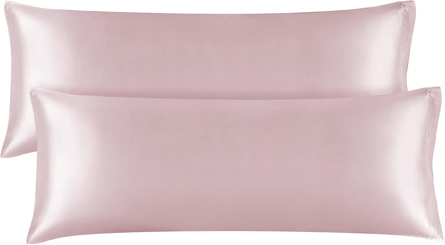 BEDELITE Satin Body Pillow Cover 2 Pack, Super Soft and Cooling Body Pillow Pillowcase for Hair and Skin, Breathable Silky Full Long Pillowcase Cover(20"x54", Lotus Pink)