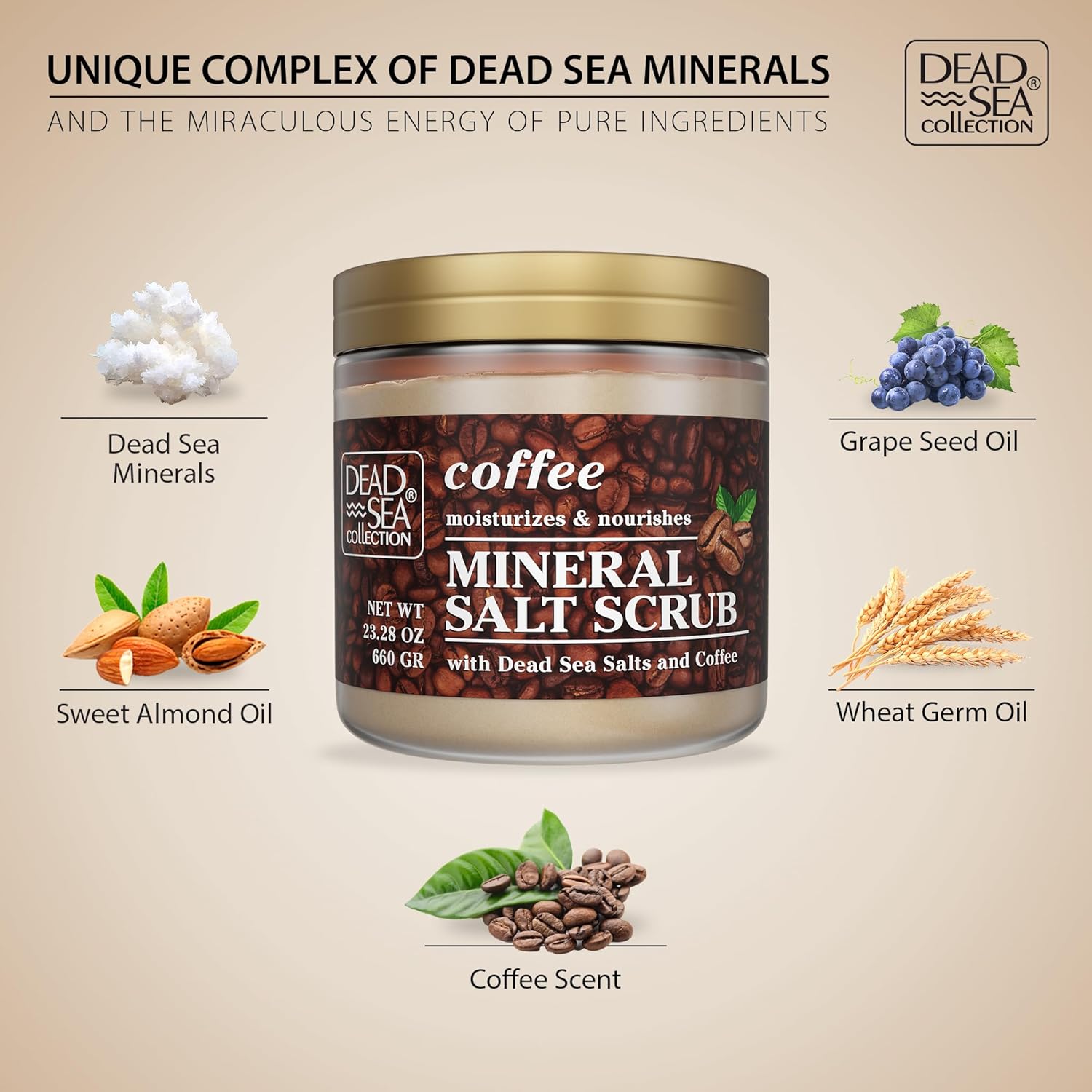 Dead Sea Collection Coffee Scented Salt Body Scrub - Large 23.28 OZ - with Pure Oils and Dead Sea Minerals