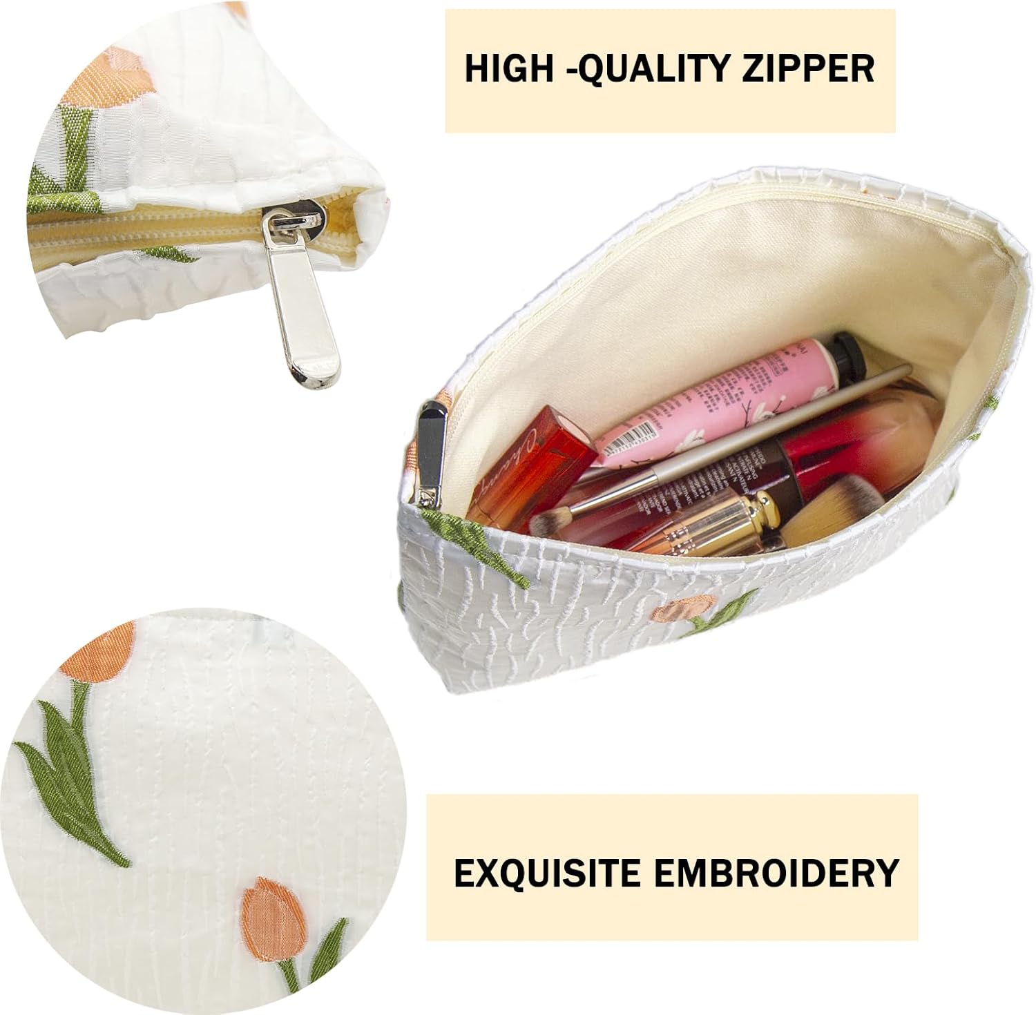 - Floral Pouch Pattern Small Cosmetic Bag for Purse: The large makeup purse feature a beautiful tulip floral print, adding a touch of style to your makeup routine. Make you feel happy everyday.