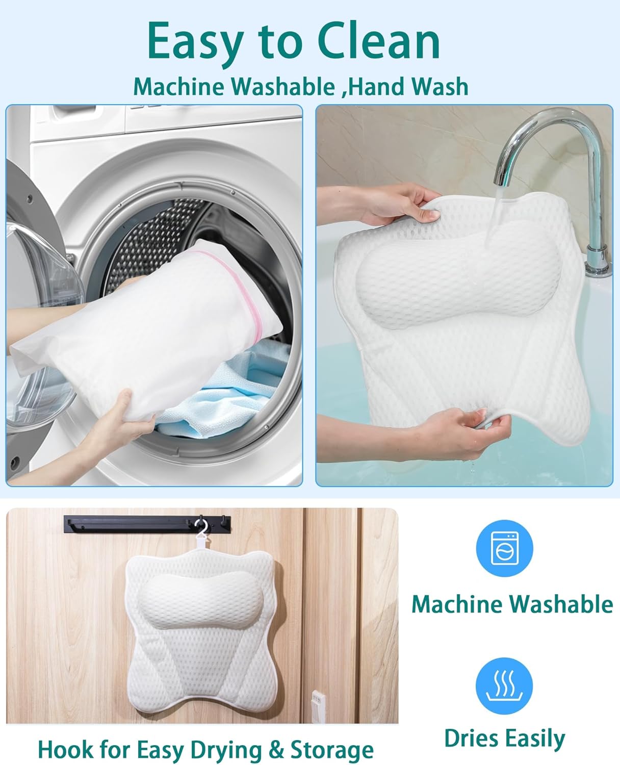 - Upgrade 4D Air Mesh: Bath tub pillows are made of high-quality polyester, soft and comfortable, with thickened 4D mesh fabric on the surface, soft and stretchy,comfort and breathable, easy to clean.