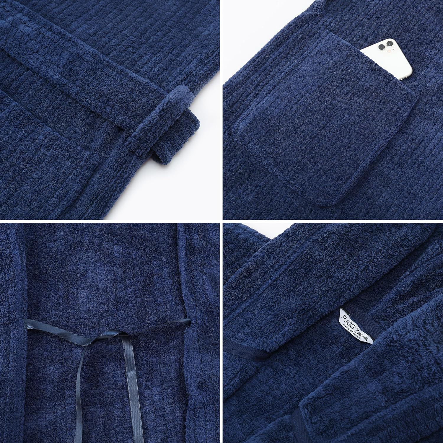 - HOODED BATHROBES WITH POCKETS: The hood is perfect for keeping the head warm during the chilly mornings. Slip front pockets are perfect for storing all your stuff with convenience, or just for keeping your hands warm in this bathrobe