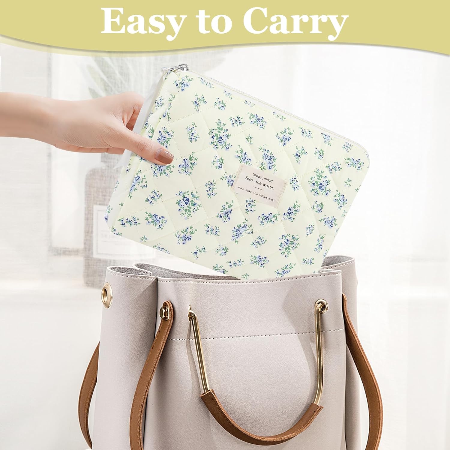 Floral Makeup Bag, Small Cosmetic Bag for Women Girls, Cute Cotton Makeup Bag, Quilted Makeup Bags, Flower Travel Toiletry Organizer Bag(LSHH)