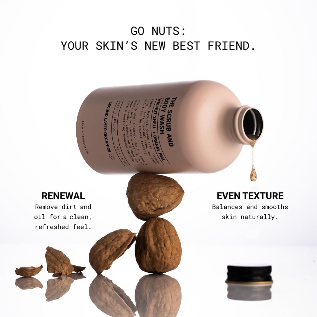 - Natural Exfoliation: Our body scrub features finely crushed walnut shells that gently buff away dead skin, leaving your skin smooth and refreshed. Made with natural ingredients, it offers effective exfoliation without irritation. A perfect addition to your skincare routine, it’s crafted in the USA and comes with a complimentary organic loofah for enhanced exfoliation.