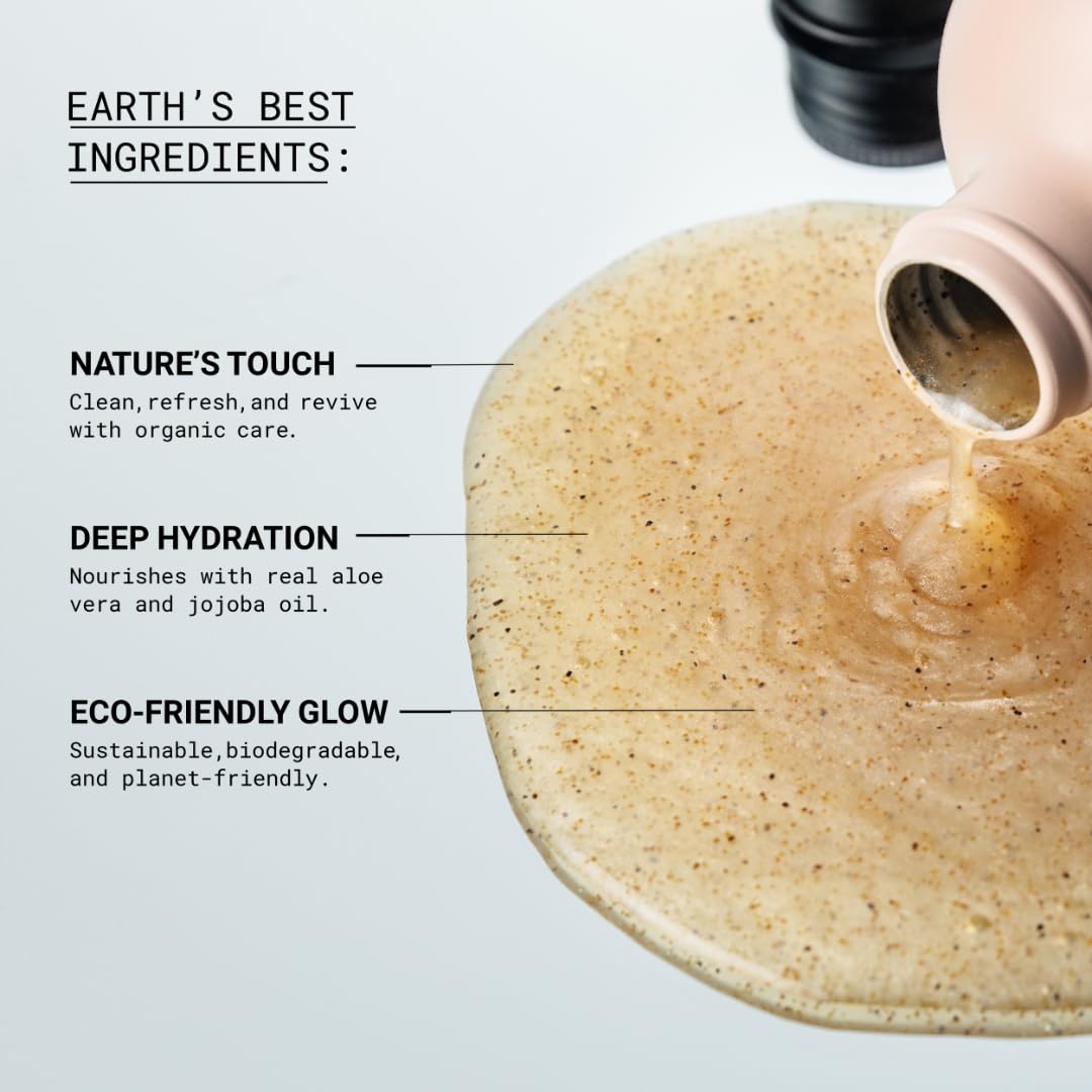 - All-Natural Ingredients: Formulated with pure, plant-based ingredients, our body scrub gently exfoliates while nourishing your skin. Suitable for daily use and all skin types, it’s free from harmful chemicals and dyes. Crafted in the USA and packaged in recyclable materials, it's a simple yet effective choice for eco-conscious skincare.