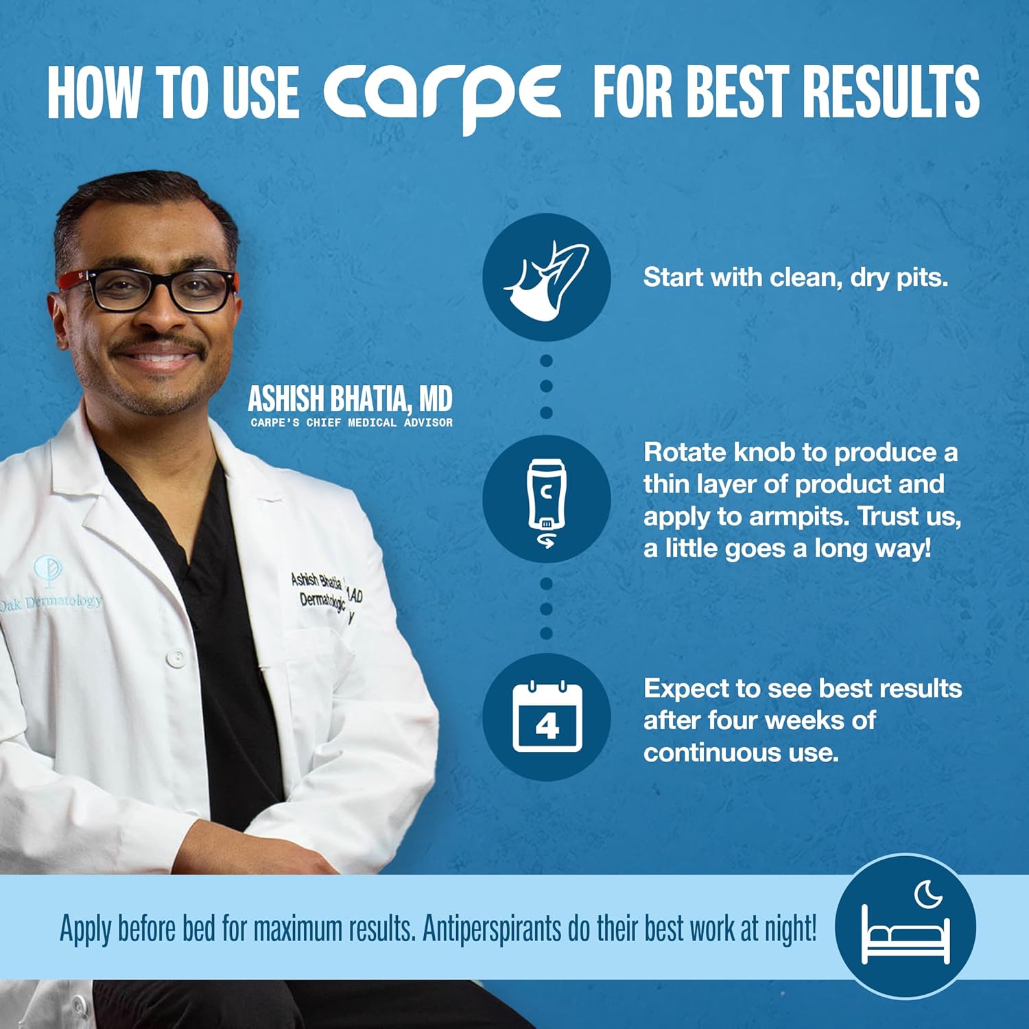 - ADVANCED SWEAT PROTECTION: The ultimate dermatologist-recommended deodorant for extreme sweating! Carpe deodorant & antiperspirant was specifically designed to stop underarm sweat with superior moisture control while combating odor. Work toward zero sweat & restore confidence with dry underarms!