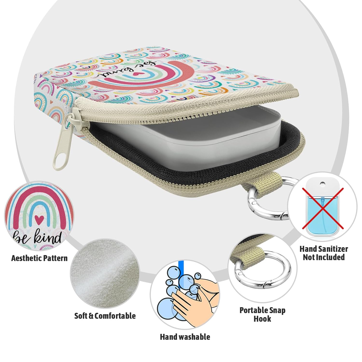 Be Kind Rainbow Hand Sanitizer Spray Case, Hand Sanitizer Holder Zippered Pouch, Cute Fashion Accessory with Snap Hook for Glow Mist and Power Mist 1FL OZ