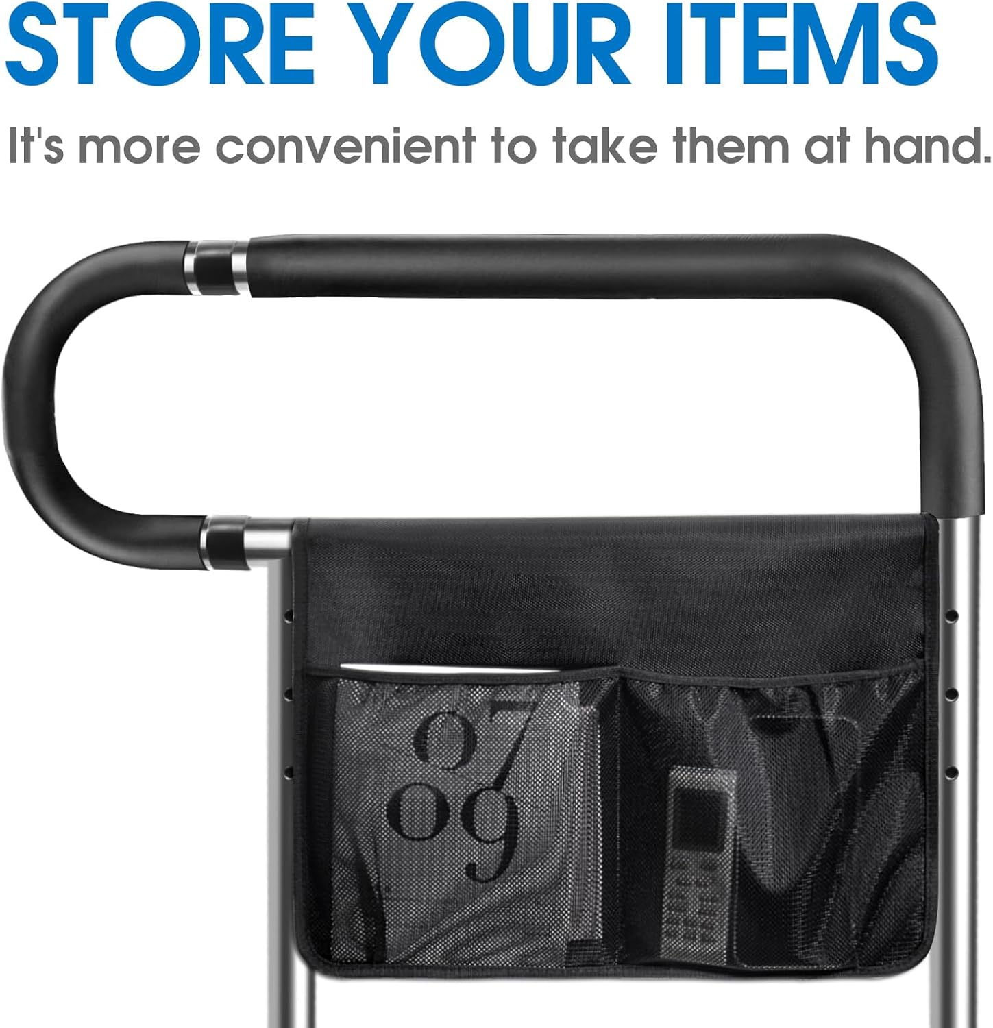 Bed Rails for Elderly Adults Safety, Stainless Steel Bed Assist Rail with Adjustable Side Railings for Seniors Bedside Fall Prevent Grab Bar with Storage Pocket,Fits King Queen Full Twin Bed
