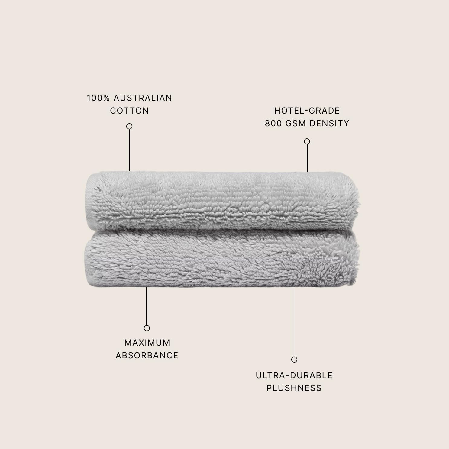 Italic Ultraplush Australian Cotton Washcloths - Set of 2 Luxury Plush Face Wash Cloths, Soft and Absorbent 800 GSM 100% Cotton Washcloth for Bathroom, Spa, Gym, Face and Body (Light Grey)