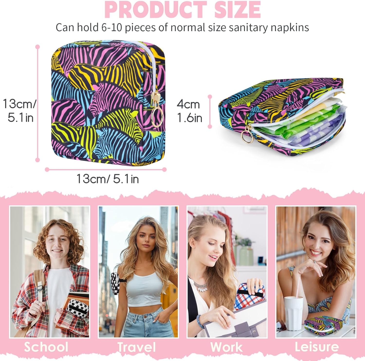 - 👝 【Perfect Size for Period Essentials】 - This compact period bag (5.1 x 5.1 x 1.6 in / 13 x 13 x 4 cm) easily holds 6-10 standard pads (Size 1-5) or a combination of pads, liners, and tampons, making it an ideal sanitary napkin storage bag for your purse or backpack