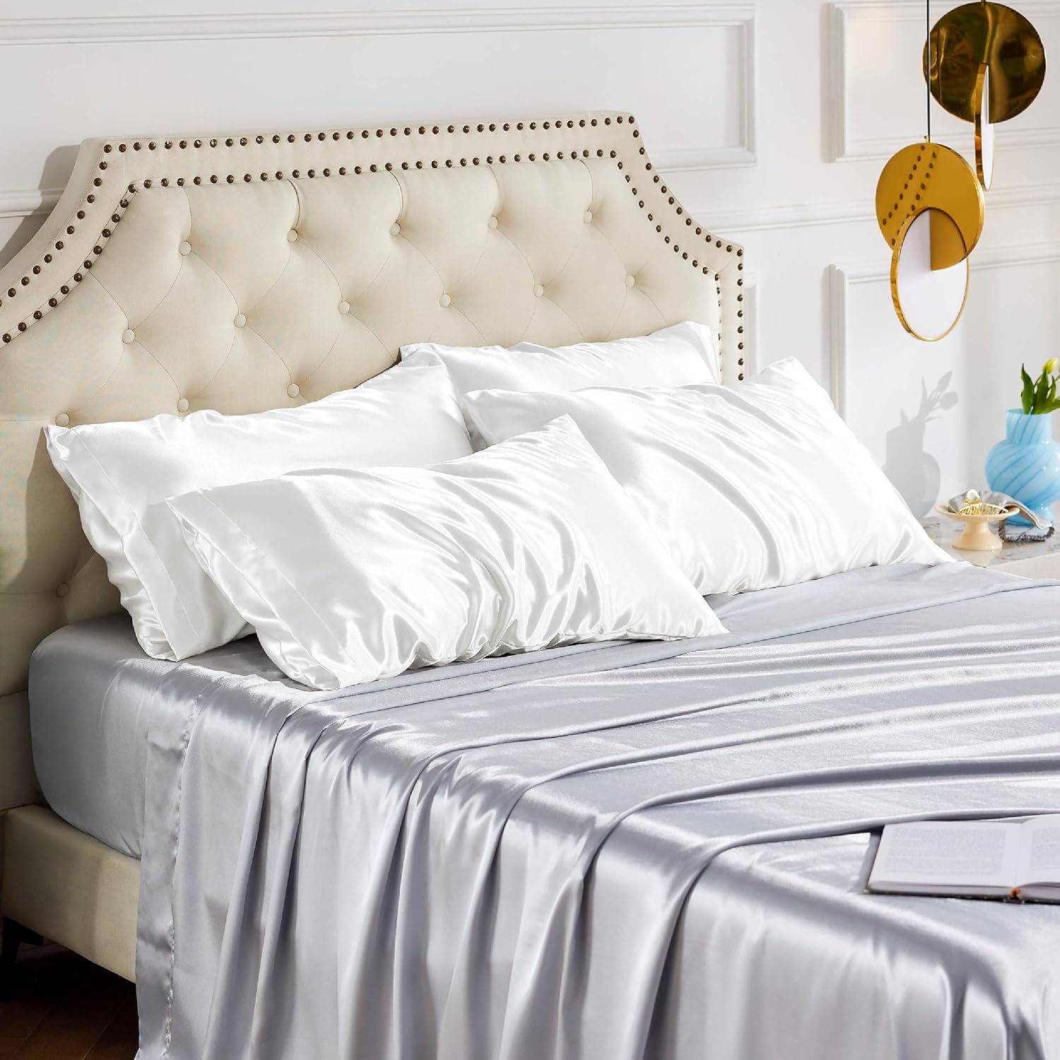 Bedsure Satin Pillowcase Standard Set of 4 - Pure White Silky Pillow Cases for Hair and Skin 20x26 Inches, Pillow Covers with Envelope Closure, Gifts for Women Men