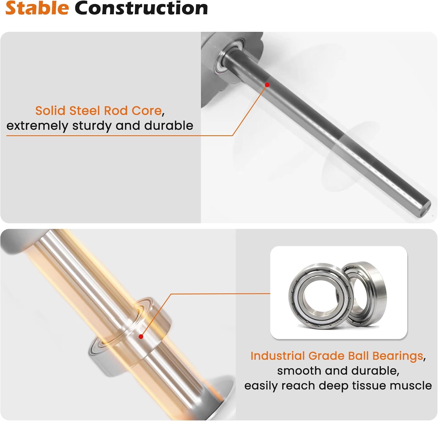 - Premium Material: KITWILD muscle roller is made of high-quality natural rubber, providing the perfect balance of flexibility and firmness. Industrial-grade ball bearings are smooth and durable and easily reach deep tissue muscle. Solid steel rod core, extremely sturdy and durable