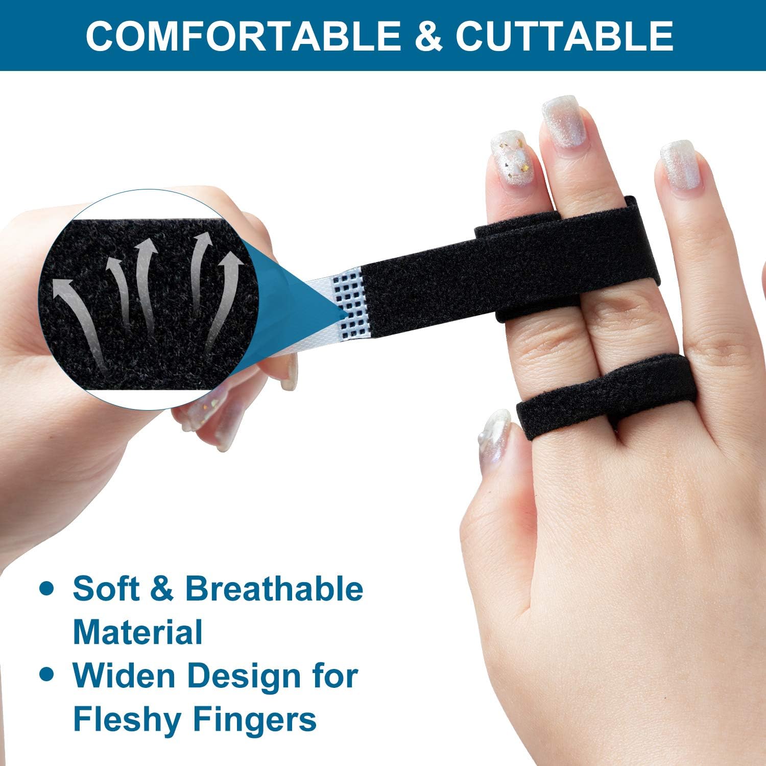 - Super Convenient and Comfortable to Use: Using scissors to cut finger splint wrap in half, and then go on one finger and wrap around the other makes them easy to put on in seconds, easy one-handed application, even when nobody is around to assist. The adjustable strap fits any size fingers whether men or women.