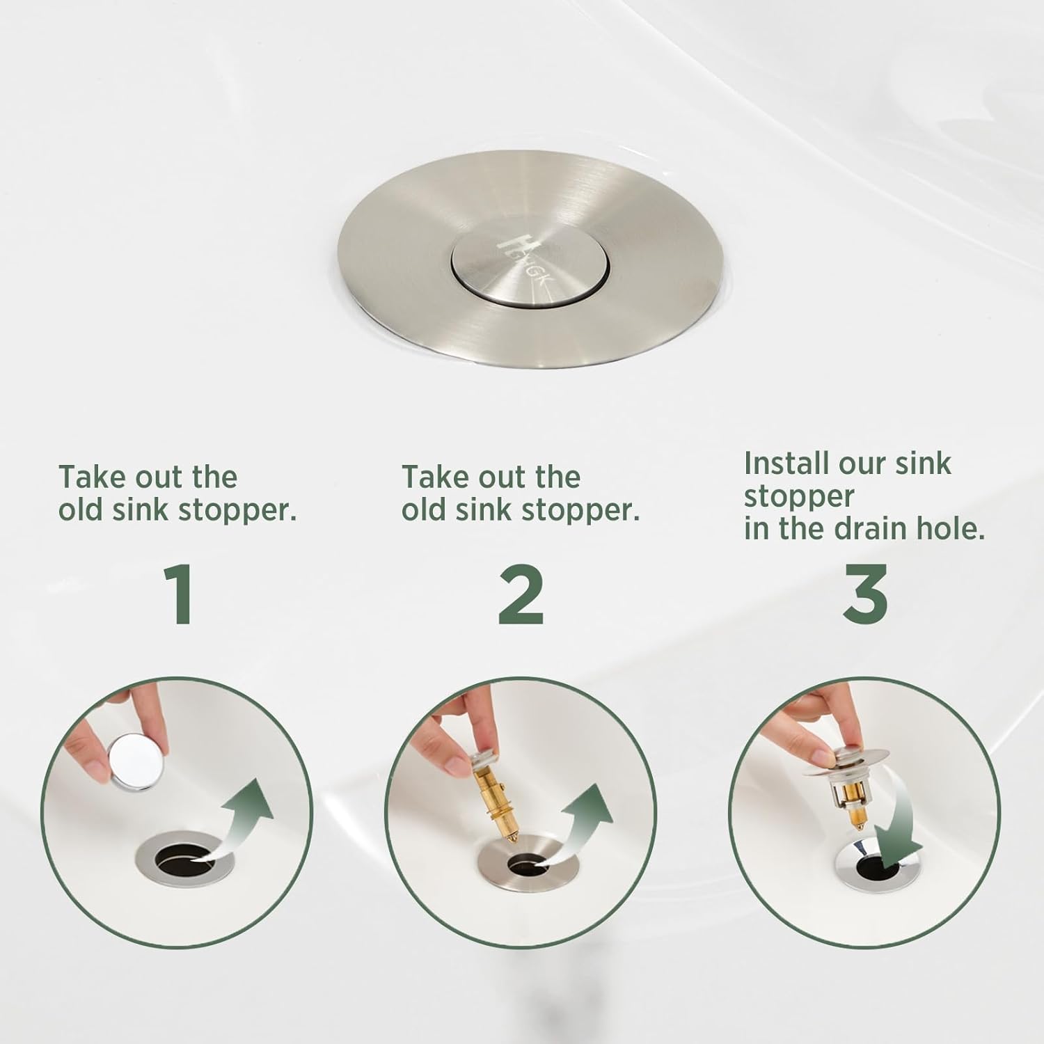 - Convenient Installation and Easy Cleaning - This pop-up drain stopper allows for tool-free installation—simply insert it into the drain hole for a quick upgrade, eliminating the need for costly plumber fees. Designed for hassle-free maintenance, it can be disassembled into three parts for effortless cleaning, making it easy to keep your sink looking fresh